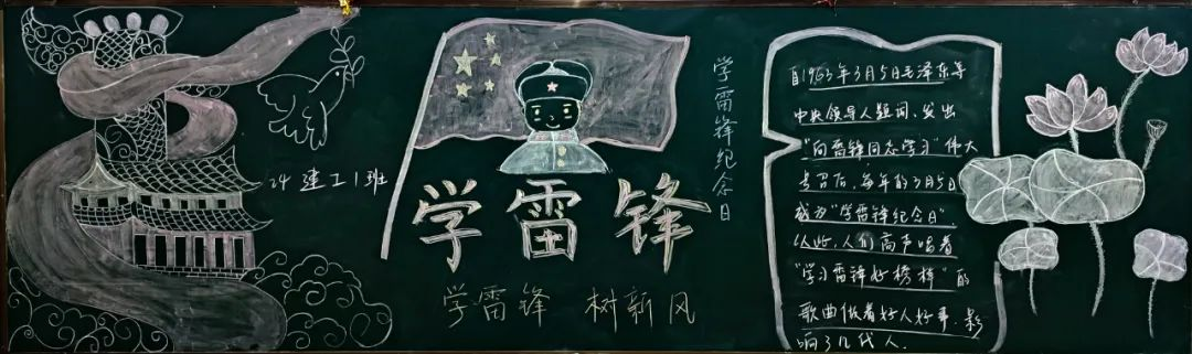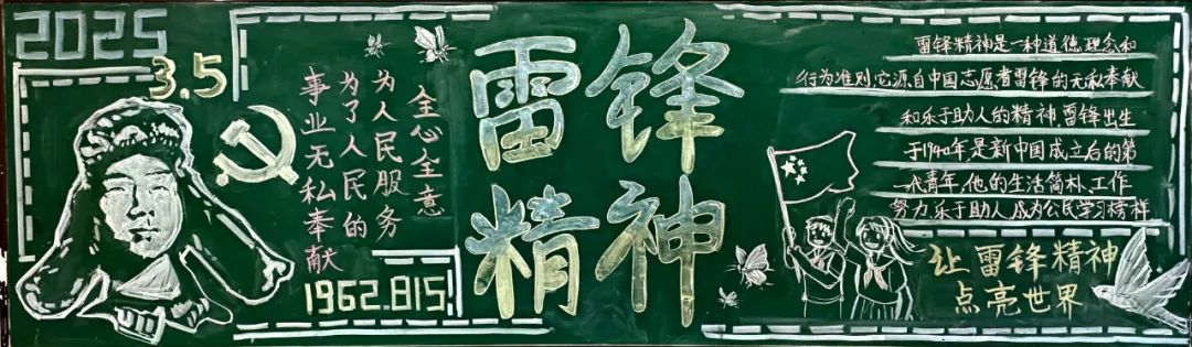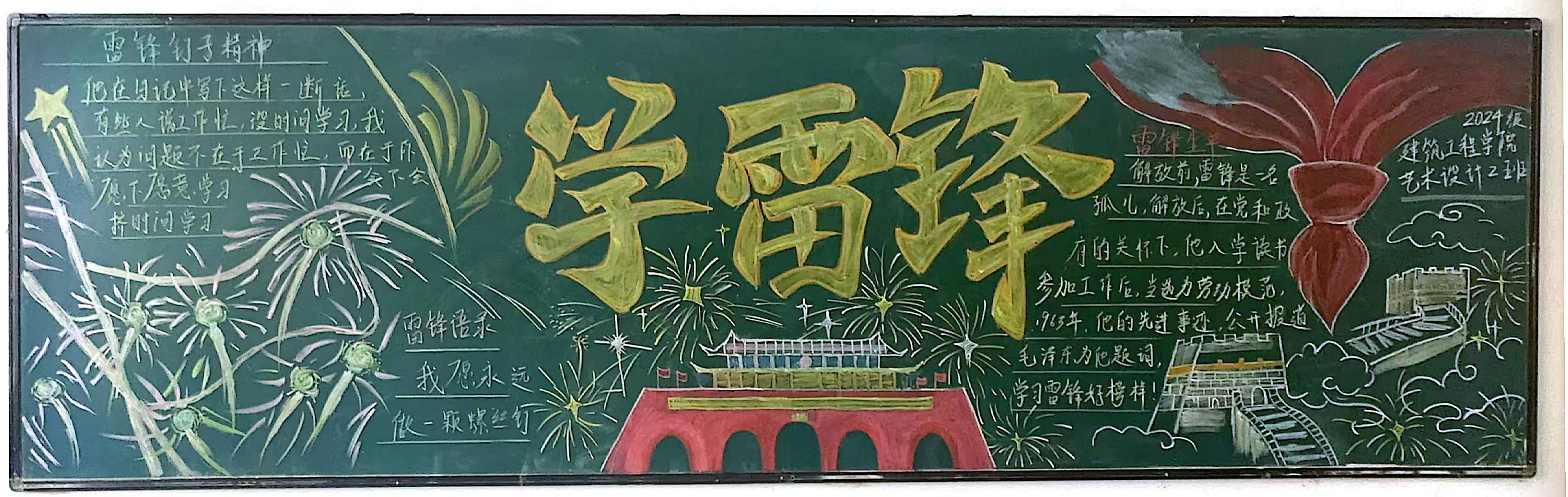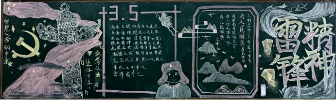 2025年3月5日,是全国第62个“学雷锋纪念日”,也是第26个“中国青年志愿者服务日”。为弘扬雷锋精神,传承红色基因,深化校园文化建设,3月5日,建筑工程学院举办了以“雷锋印记绘青春”为主题的黑板报设计大赛。