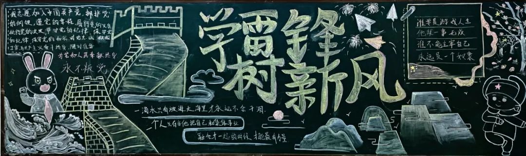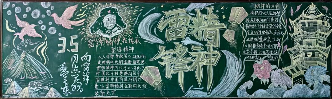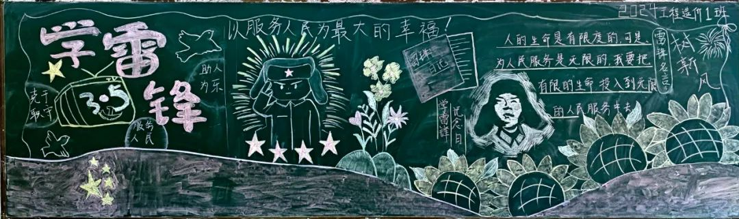各班都积极响应学校号召,同学们群策群力,精心设计,把对雷锋的尊敬与敬仰之情,都融入到了一块块美观大方、主题突出、图文并茂、创意新颖的黑板报里,同学们的心灵再一次被雷锋的“钉子精神”、“全心全意为人民服务”的高尚品质所洗礼。这不仅展现了同学们的绘画与设计才华,更传递出他们对青春、理想与责任的深刻思考。让我们一同走进这场视觉与思想的盛宴,感受学子们笔尖流淌的雷锋精神!