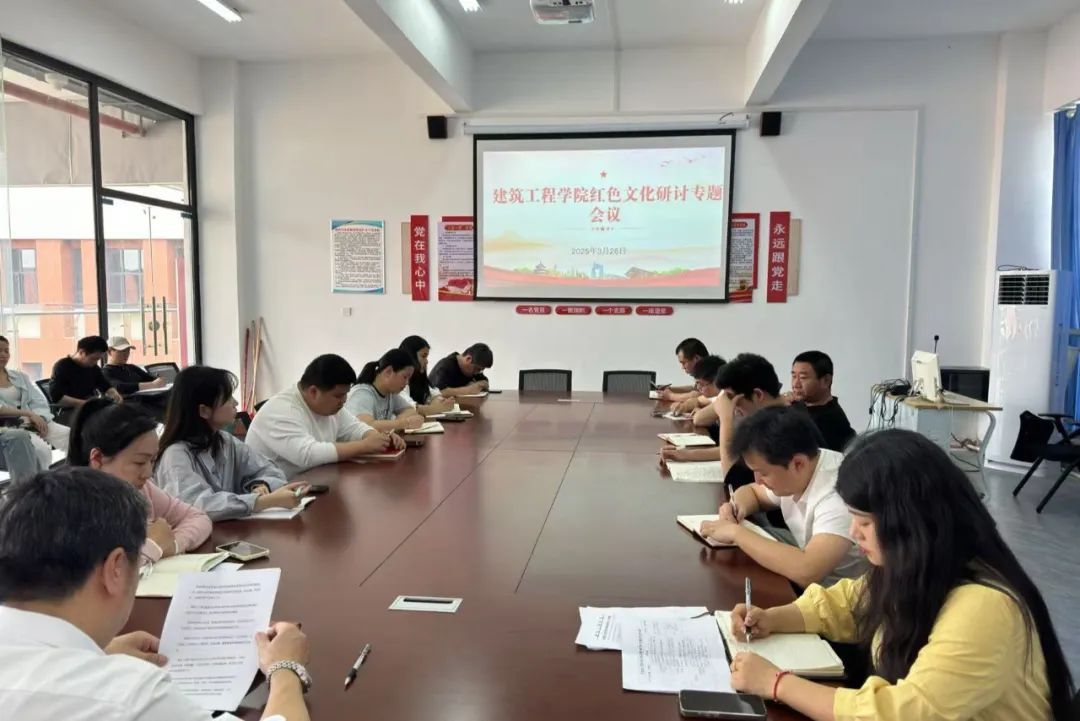 为深入贯彻党的二十大精神和习近平文化思想,积极响应习近平总书记关于“推进红色基因传承”的重要指示精神,建筑工程学院于2025年3月26日在党员活动室开展红色文化专题研讨会。会议由党支部副书记胡琴主持,建筑工程学院全体教职工出席。
