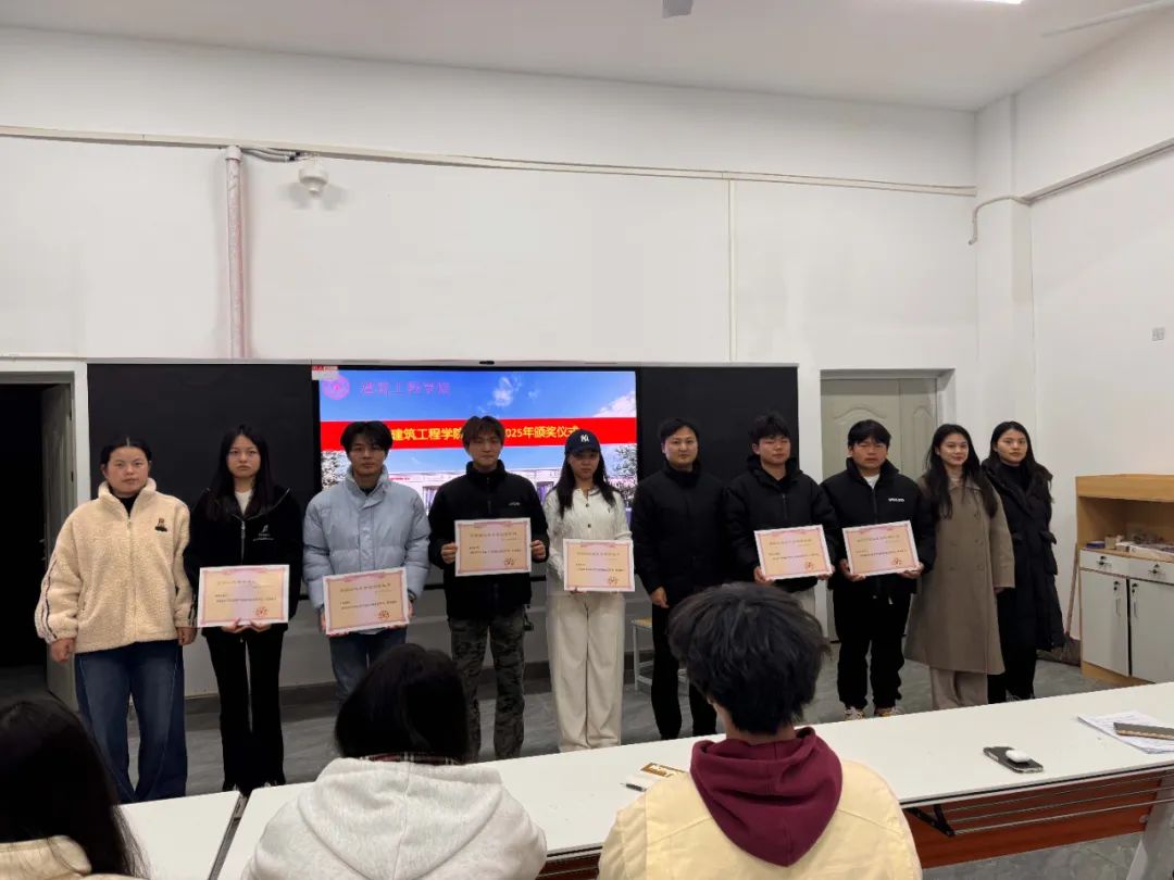 为表彰优秀学子,弘扬励志精神,激发全院学生向上动力,2025年3月31日,建筑工程学院在新实训楼C509举行国家励志奖学金及优秀学生、三好学生等荣誉证书颁发仪式。建筑工程学院党支部副书记胡琴、学工办主任洪为及各辅导员出席。