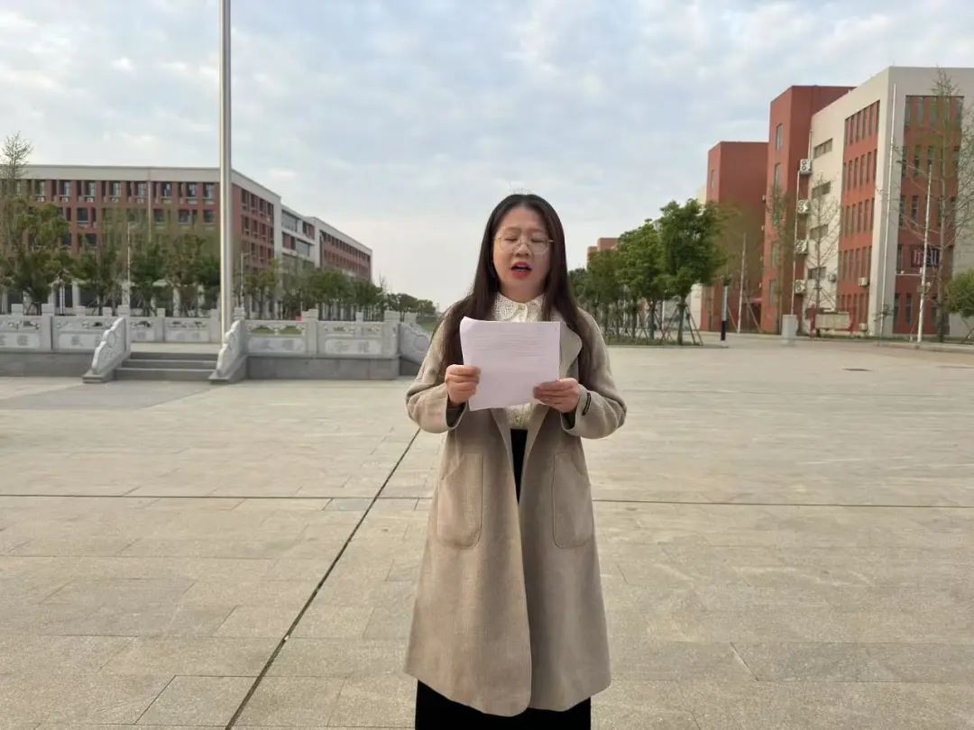 随后,24级学生代表叶淑琳发表了国旗下讲话,她引用董存瑞和刘胡兰的英勇事迹,强调我们应当铭记这段波澜壮阔的历史,珍惜这来之不易的和平与发展环境。希望我们携手并进,共同奋斗,在新时代的征程上书写属于自己的辉煌篇章。在未来的日子里,无论前方道路多么崎岖,我们都要坚定信念,勇往直前。