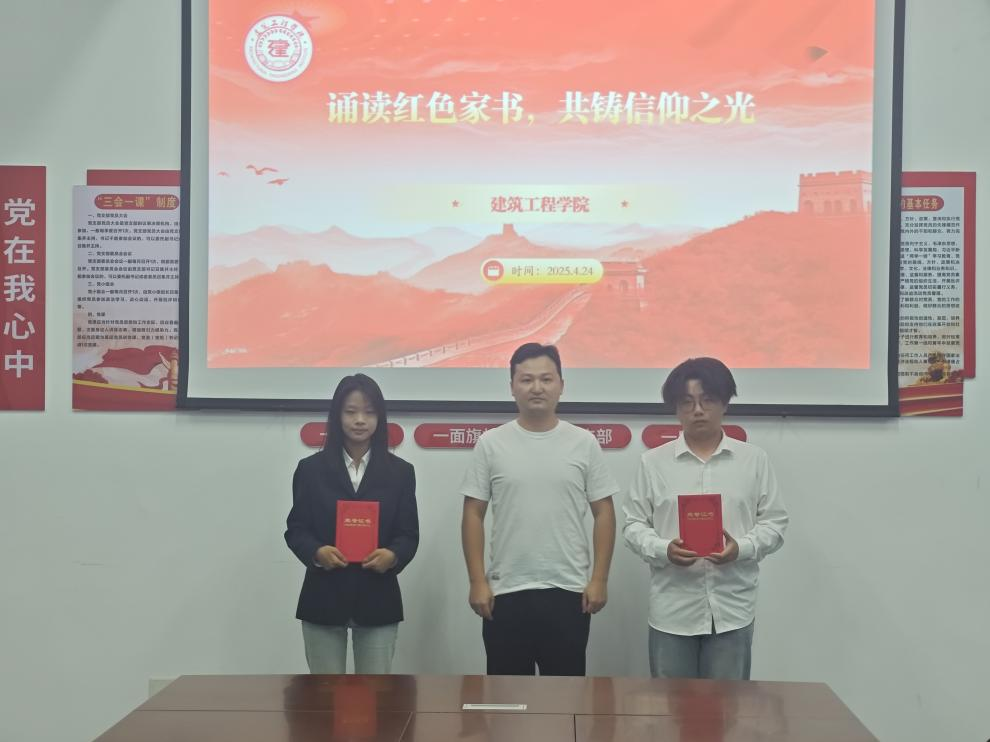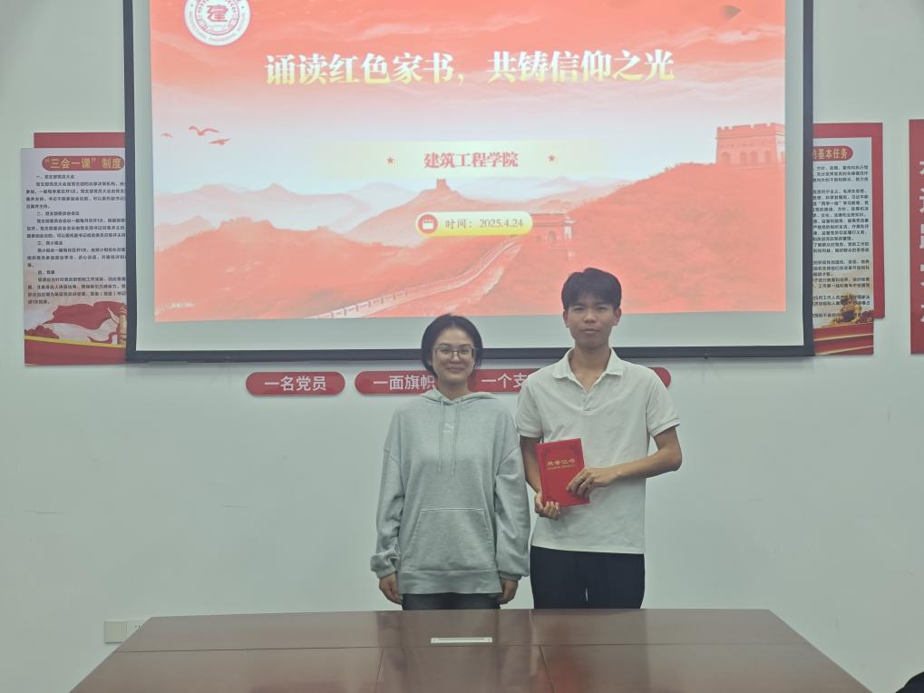 为进一步深化红色文化铸魂育人,教育引导建工学子从红色家书中重温革命历史、缅怀革命先烈,传承红色基因、牢记初心使命,树立远大理想,做担当民族复兴大任的时代新人。建筑工程学院于4月24日在实训楼党员活动室隆重举办“诵读红色家书,共铸信仰之光”主题朗读活动。学工办副主任洪为、各辅导员担任评委。