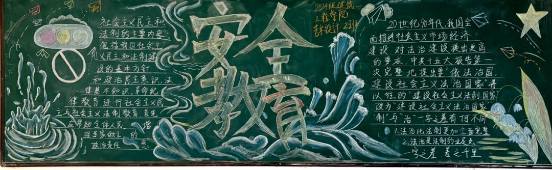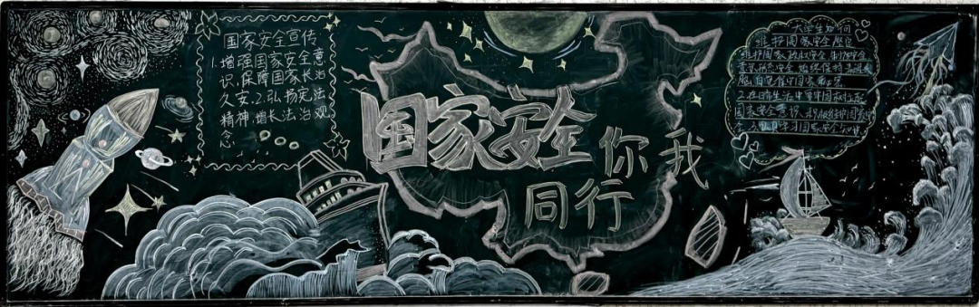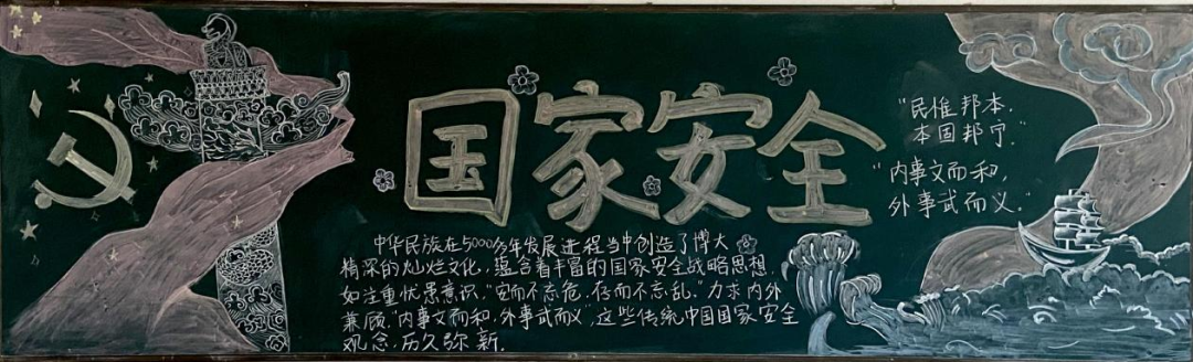 学院举办“新时代的中国国家安全”主题黑板报创作大赛。同学们以粉笔为媒、以创意为笔,将总体国家安全观20个重点领域转化为可视化的艺术表达。一幅幅黑板报既展现专业特色,又彰显青春担当。