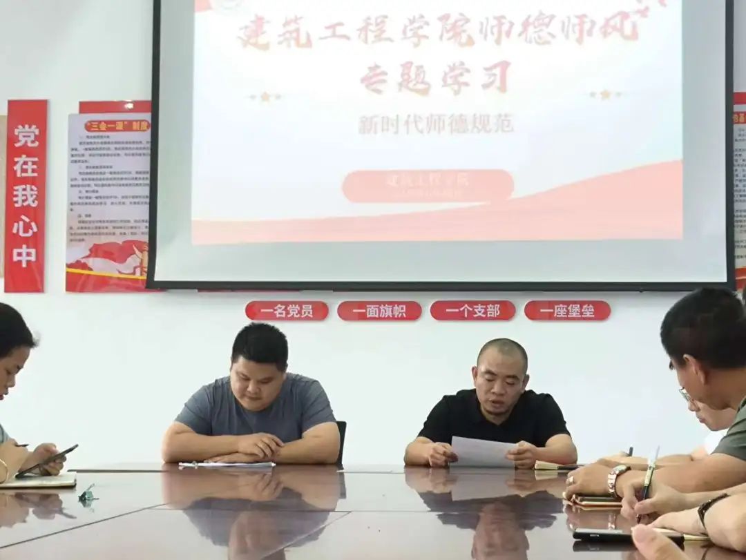 为进一步加强教师队伍建设,深化师德师风建设,建筑工程学院于2025年6月18日在党员活动室组织全体教职工开展“新时代师德规范”专题学习会议。本次会议由学院党支部副书记胡琴主持并领学,全体教职工参与学习研讨。