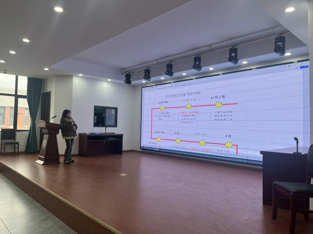 为帮助学生更好地了解初级会计职称考试,报考流程及备考规划,2024年11月20日在新实训楼C栋505举办了一场关于2025年初级会计师考试备考的专题活动。这次活动汇聚了三位高分通过考试的同学,他们不仅分享了宝贵的备考经验,还提供了实用的策略和建议。