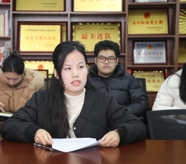 教师代表游芸佳同志学习了《习近平对新时代马克思主义理论研究和建设工程作出重要指示强调 扎根中国大地赓续中华文脉厚植学术根基为推进马克思主义中国化时代化作出更大贡献》后做出了感想发言。她讲到作为一名教师必须将新时代马克思主义理论思想融入到教学当中,推进马克思主义中国化时代化,忠诚于党的教育事业,坚守社会主义核心价值观,培养德智体美劳全面发展的社会主义建设者和接班人。