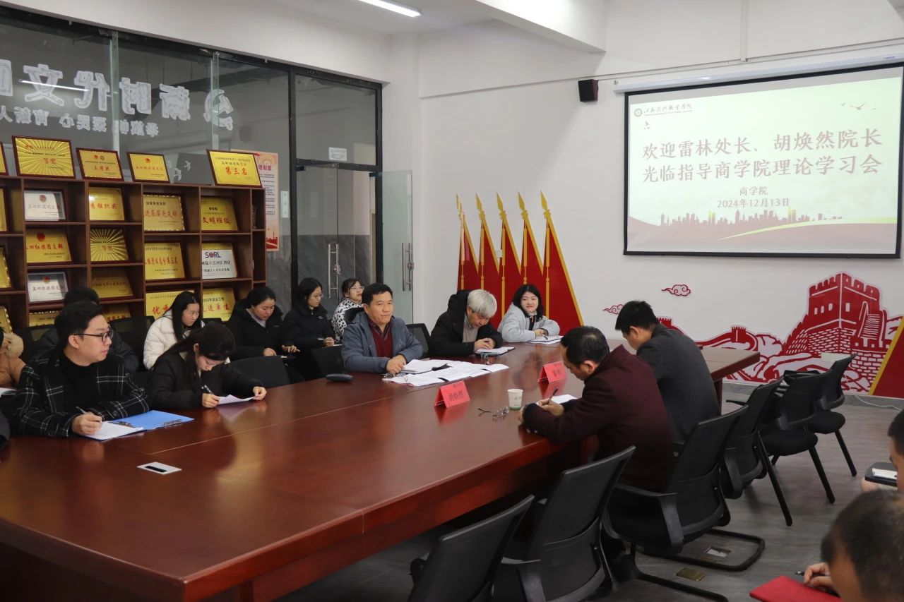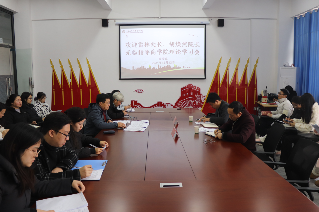 为深入学习贯彻习近平新时代中国特色社会主义思想,深刻认识和准确把握党的二十届三中全会精神,2024年12月13日下午,商学院党支部于新实训楼c栋3-2-b室开展理论学习会,会议由党支部书记杨旭华主持,商学院院长邓小朱及商学院全体教职工参与会议。后勤处处长雷林,数字产业学院院长胡焕然到会旁听指导。