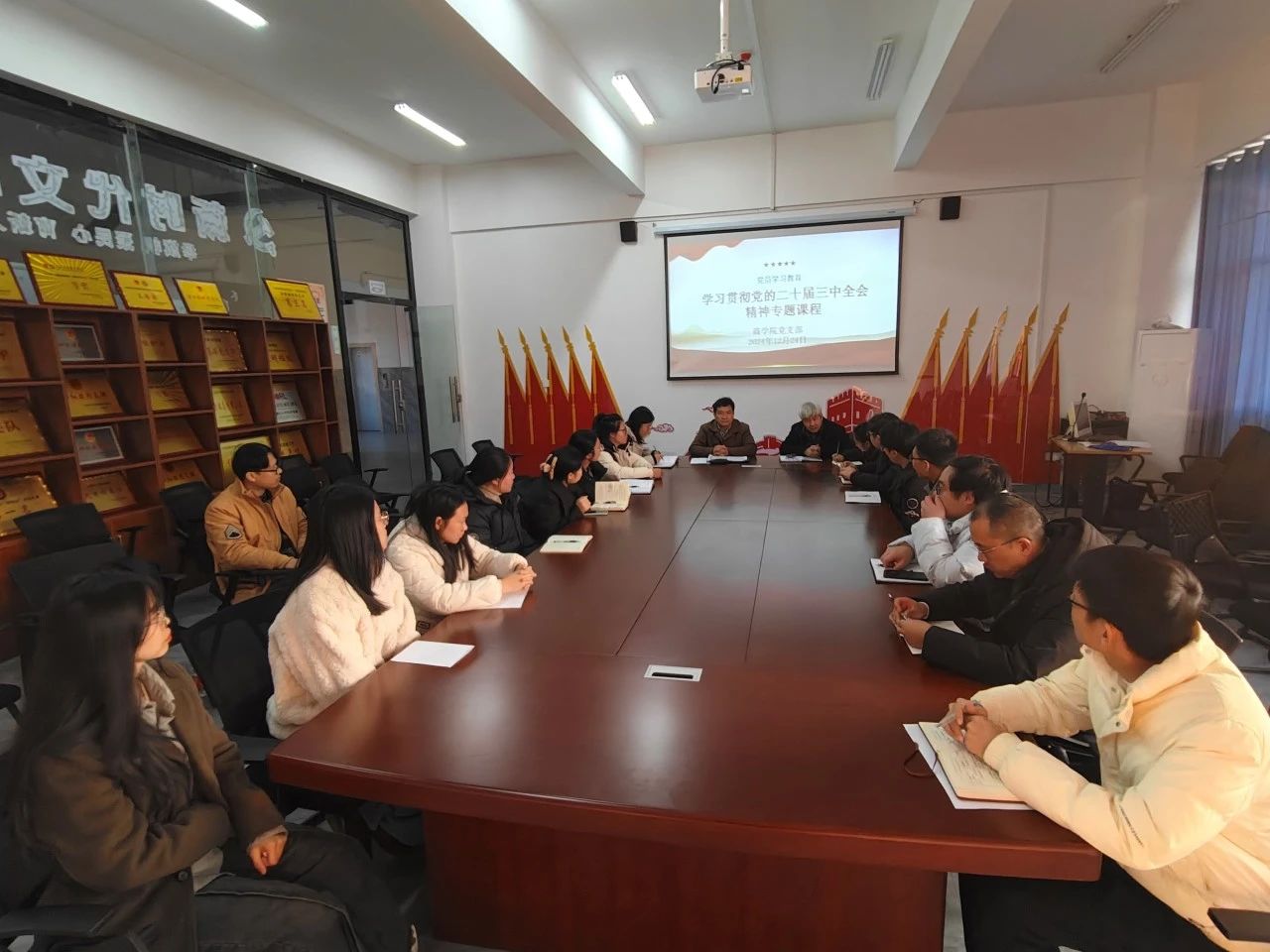 为深入学习贯彻习近平总书记关于全面深化改革的一系列新思想、新观点、新论断和党的二十届三中全会精神,发挥经济体制改革牵引作用,全面推进各领域改革,加强党对进一步全面深化改革的领导。2024年12月24日,商学院党支部于新实训楼c栋3-2-b室开展学习贯彻党的二十届三中全会精神专题课程,会议由党支部书记杨旭华主持,商学院院长邓小朱及商学院全体教职工参与会议。