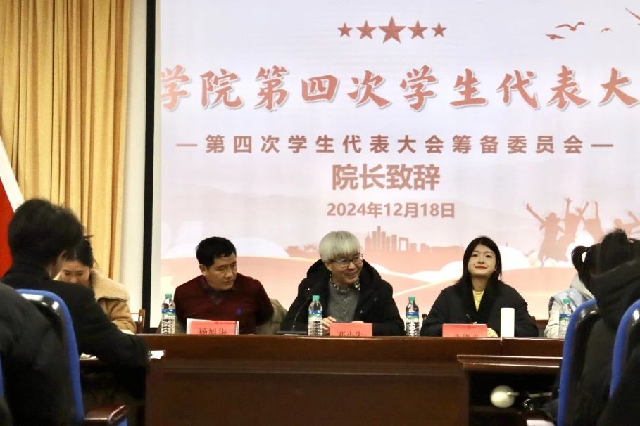 为全面贯彻落实党的二十大精神以及党的二十届三中全会精神,学习宣传习近平新时代中国特色社会主义思想,团结带领广大青年以行动诠释责任与使命,沿着既定路线勇毅前行,在社会主义现代化强国中贡献自己的青春力量。2024年12月18日,商学院第四次学生代表大会顺利召开,主会场设立为图书馆一楼演播厅,代表团会议设立C栋4楼党员活动室。出席本次会议领导有商学院院长邓小朱、党支部书记杨旭华、学工办副主任李婷、办公室副主任李唐青、辅导员邓建业、黄灿兰、李鸽、万丐、曾琦,以及各个班级学生代表一百余人参加。此次大会由黄蓉蓉同学主持。