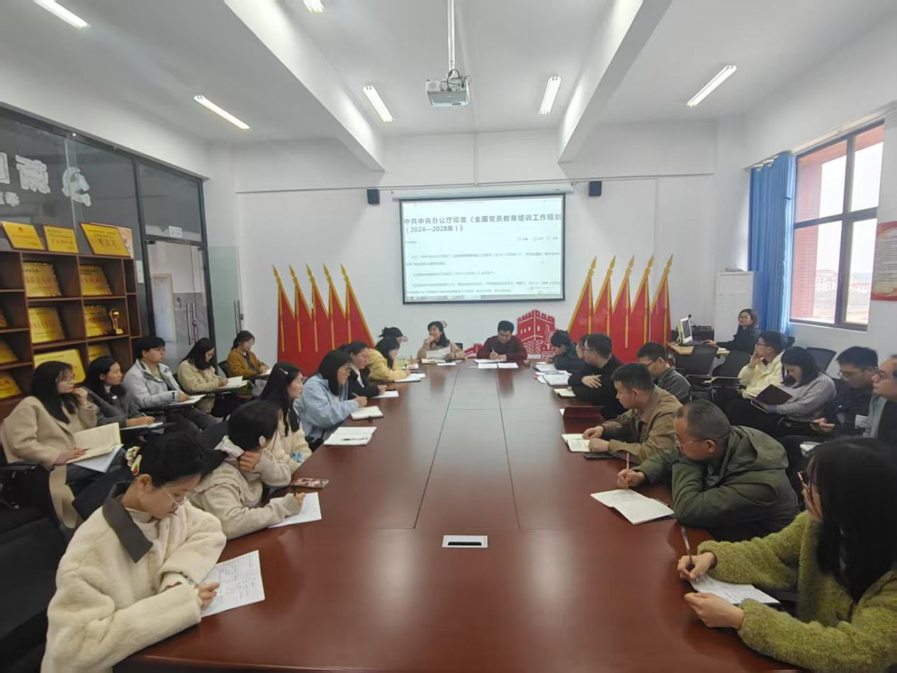 为加强和改进党员教育培训工作,锻造过硬党员队伍,不断增强党的创造力、凝聚力、战斗力,根据《中国共产党章程》和《中国共产党党员教育管理工作条例》等党内法规,中共中央办公厅印发了《全国党员教育培训工作规划(2024—2028年)》。根据上级工作提示,3月13日下午新实训楼4—3党员活动室,商学院党支部以集中学习的方式,组织了全体党员学习了《全国党员教育培训工作规划(2024-2028年)》全文。