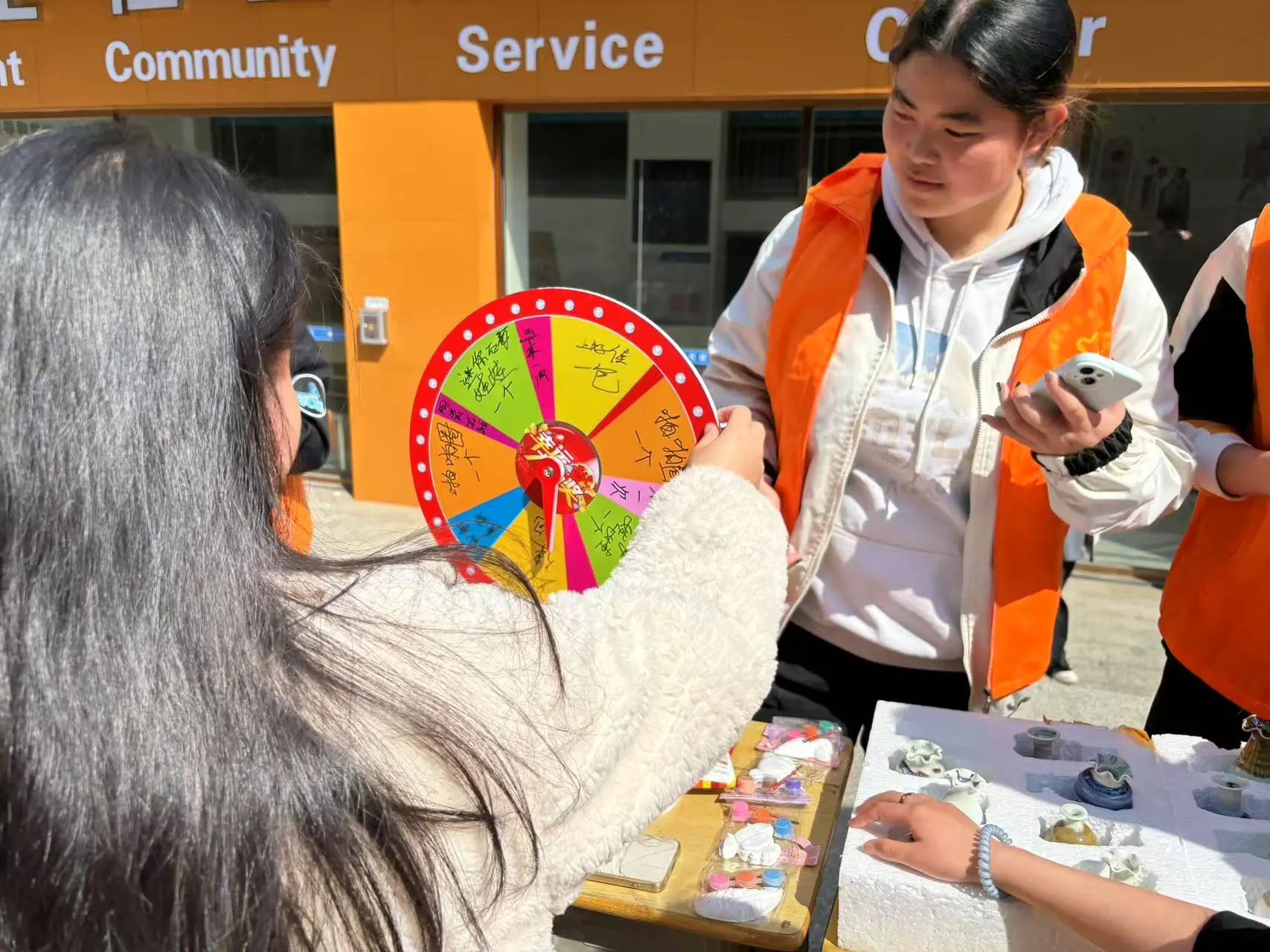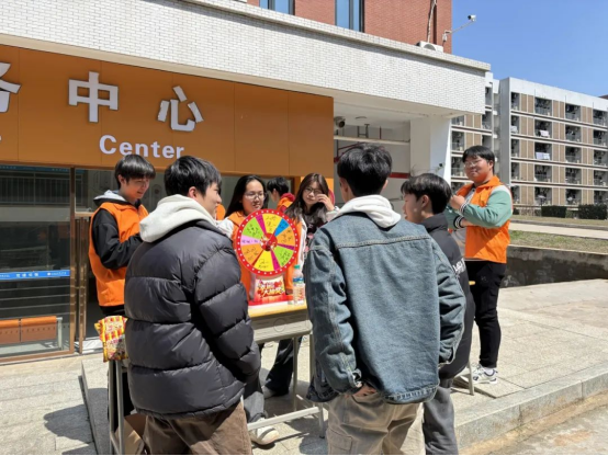 活动当日,春日暖阳洒满校园。同学们满怀期待,齐聚活动场地。活动现场,志愿者们精心准备了一系列问答题目,内容涵盖消费知识、常见侵权行为及维权方式等多个方面,这些问题均与同学们的日常生活息息相关。为激发大家的参与热情,志愿者们还准备了诸多精美实用的小礼品。同学们可根据答题成绩获得相应奖品,色彩明艳的幸运大转盘十分吸睛,空地摆放着整齐桌椅和小礼品。现场气氛热烈活跃,大家三两成群,热烈讨论着活动,眼神中满是对消费知识的渴望,