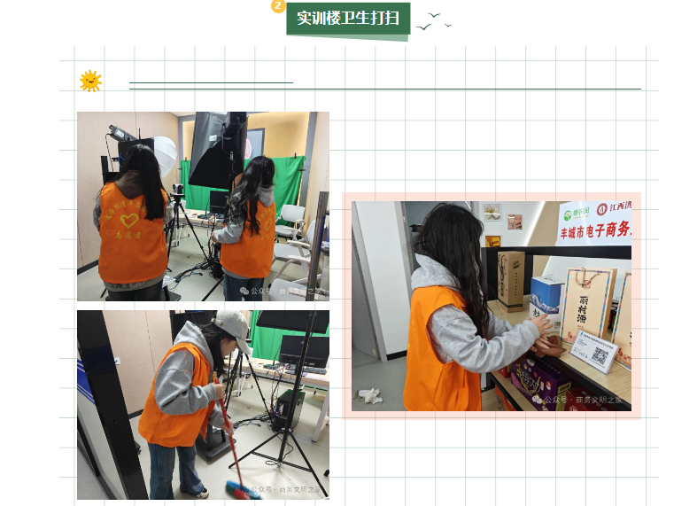 在“河小青”志愿者在维护河边卫生的同时,另一队志愿者也在打扫着实训楼的卫生。