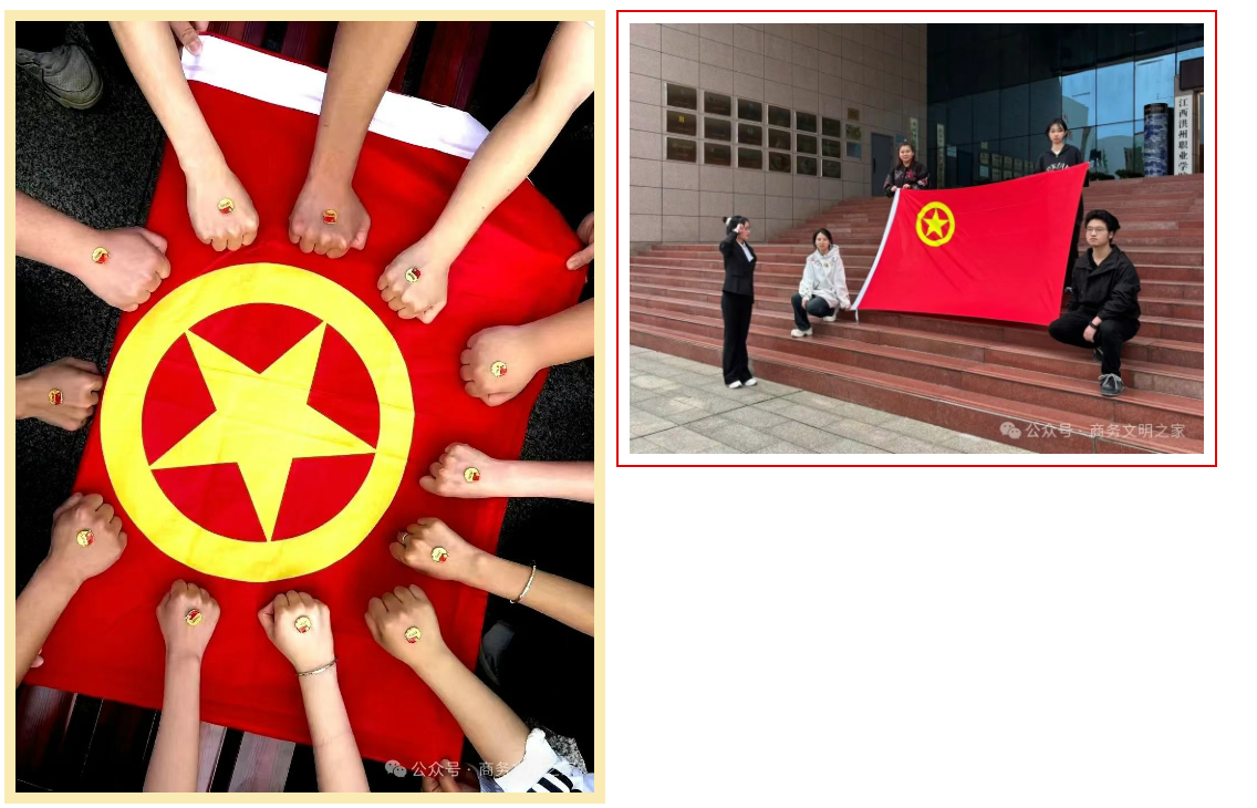 首页栏目 学院动态 实验实训 校企合作 学院简介 专业介绍 学院动态 当前位置: 首页 > 首页栏目 > 学院动态 > 正文 五四特辑|我与团徽团旗合个影——青春正当时,团旗映初心 时间:2025-05-04 初审:井云龙 二审:杨旭华 终审:邓小朱 阅读量:439 5月4日,是五四青年节,也是专属于我们的节日。在这个特别的日子里,团旗猎猎作响,团徽熠熠生辉,当我们与它们同框,便是将青春与信仰紧紧相拥。团旗那鲜艳的红,是无数青年用热血染就,引领我们朝着光明的方向前行;团徽上的齿轮、麦穗、初升的太阳及其光芒,还有写有“中国共青团”五字的绶带,每一个元素都凝聚着共青团的使命与担当,激励着我们在党的领导下,为实现中华民族伟大复兴的中国梦而努力奋斗 。 上一篇:向阳而生,逐光而行——商学院开展心理素质拓展活动 下一篇:百家争鸣辩对错,胸有成竹赛青春|商学院2025年辩论赛总决赛收官