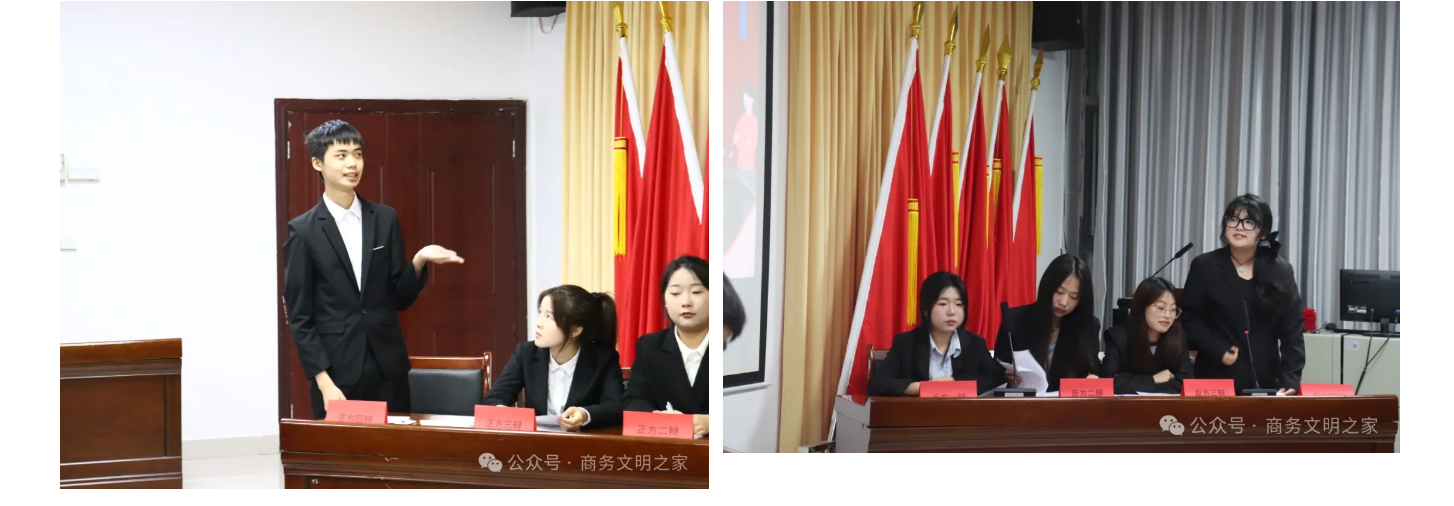 双方在自由辩论环节更是将比赛推向高潮,辩手们思维敏捷、言辞犀利,充分展现了扎实的辩论功底和对辩题的深刻思考。双方辩手立足现实案例,以数据支撑观点,沉稳应对反驳。双方从立论到总结层层递进,既有理性剖析,又不乏情感共鸣,将现场气氛推向新高潮。
