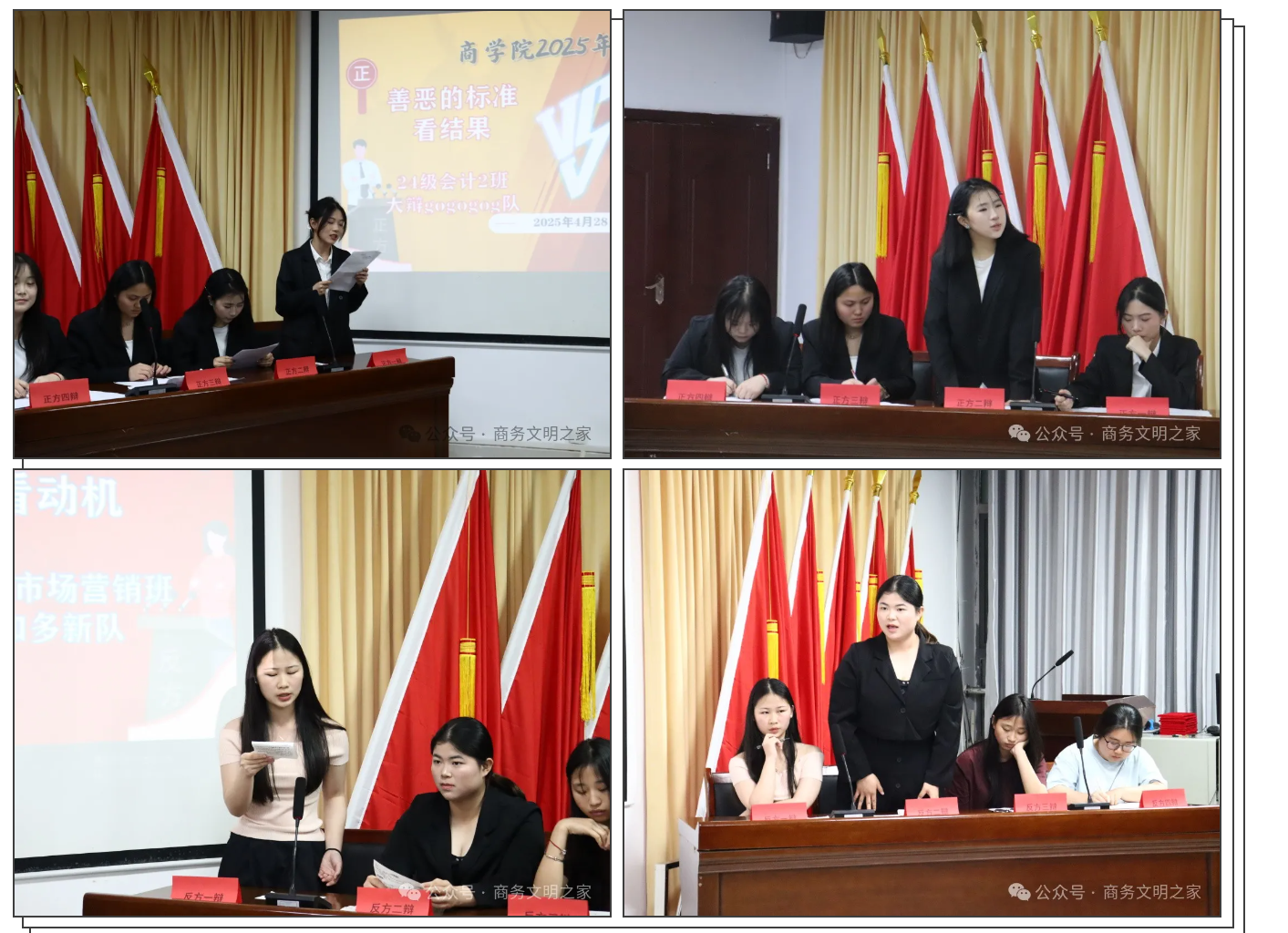 在辩论过程中,双方辩手你来我往,互不相让,时而引经据典,时而举例论证,充分展示了商学院学生的风采和实力。观众席上,掌声雷动,喝彩声此起彼伏,为辩手们的精彩表现加油助威。