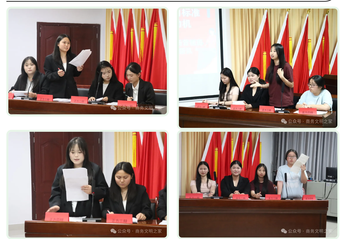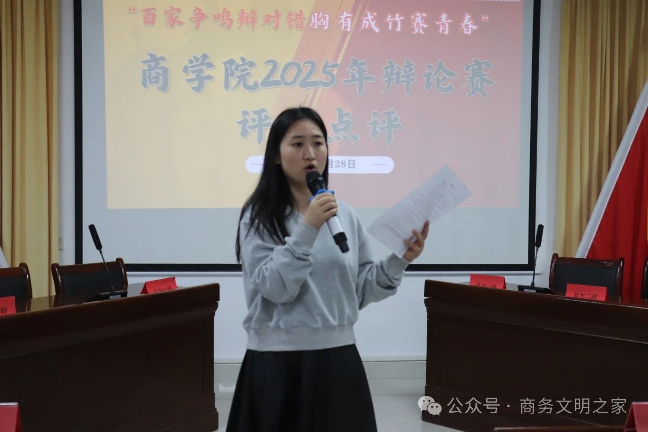 此次辩论赛不仅是一场语言与智慧的较量,更是同学们锻炼自我、展现风采的舞台。在这里,大家学会了从不同角度思考问题,提升了逻辑思维、语言表达和团队协作能力。期待未来有更多同学参与到这样的活动中,在思维碰撞中绽放青春光彩!在此,让我们祝贺商学院2025年辩论赛的圆满收官!