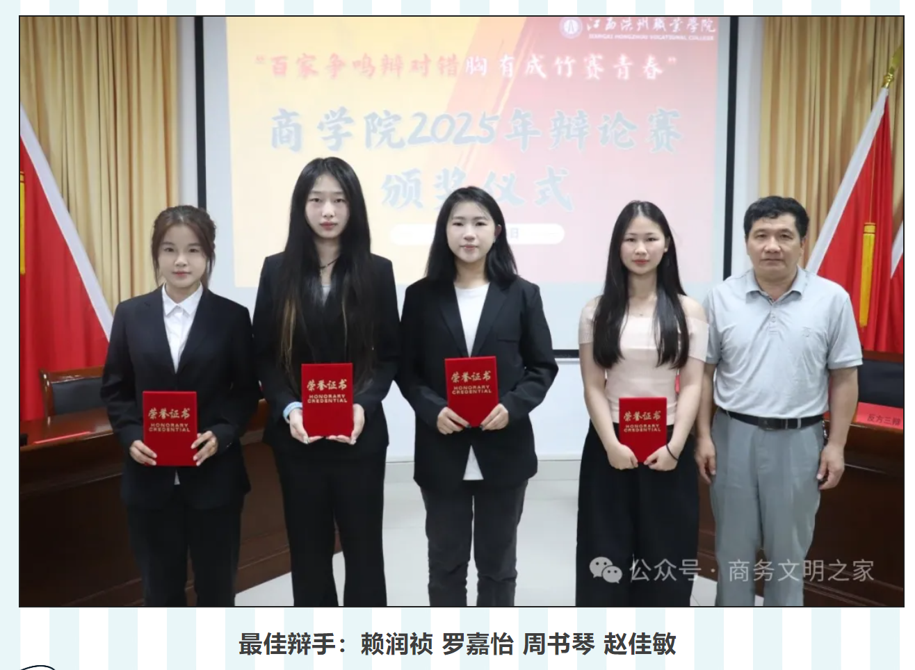 经过激烈的角逐,评委们从审题、立论、辩论技巧、团队协作等多个方面进行综合评判,最终评选出本次商学院2025辩论赛总决赛的胜出队伍,同时比赛分别产生四名“最佳辩手”。