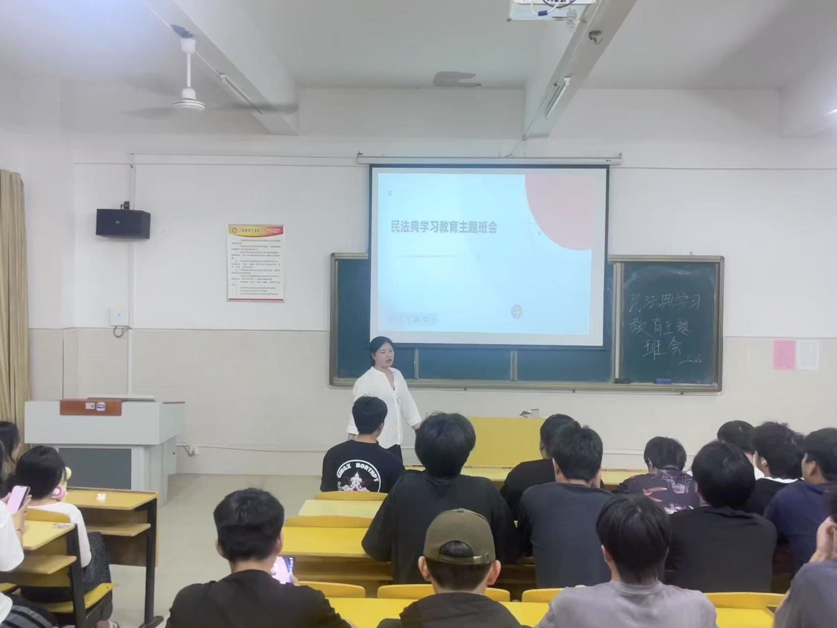 在活动中,辅导员老师以生动有趣的案例引入,结合同学们日常生活中可能遇到的校园贷、兼职纠纷等问题,深入浅出地讲解了民法典中关于民事权利、合同签订、侵权责任等方面的内容,让原本晦涩的法律条文变得通俗易懂。