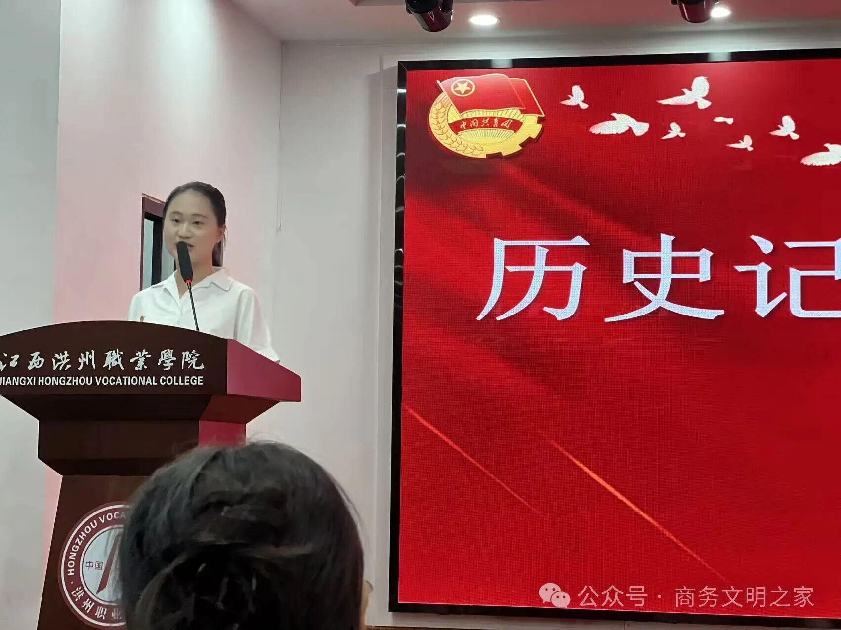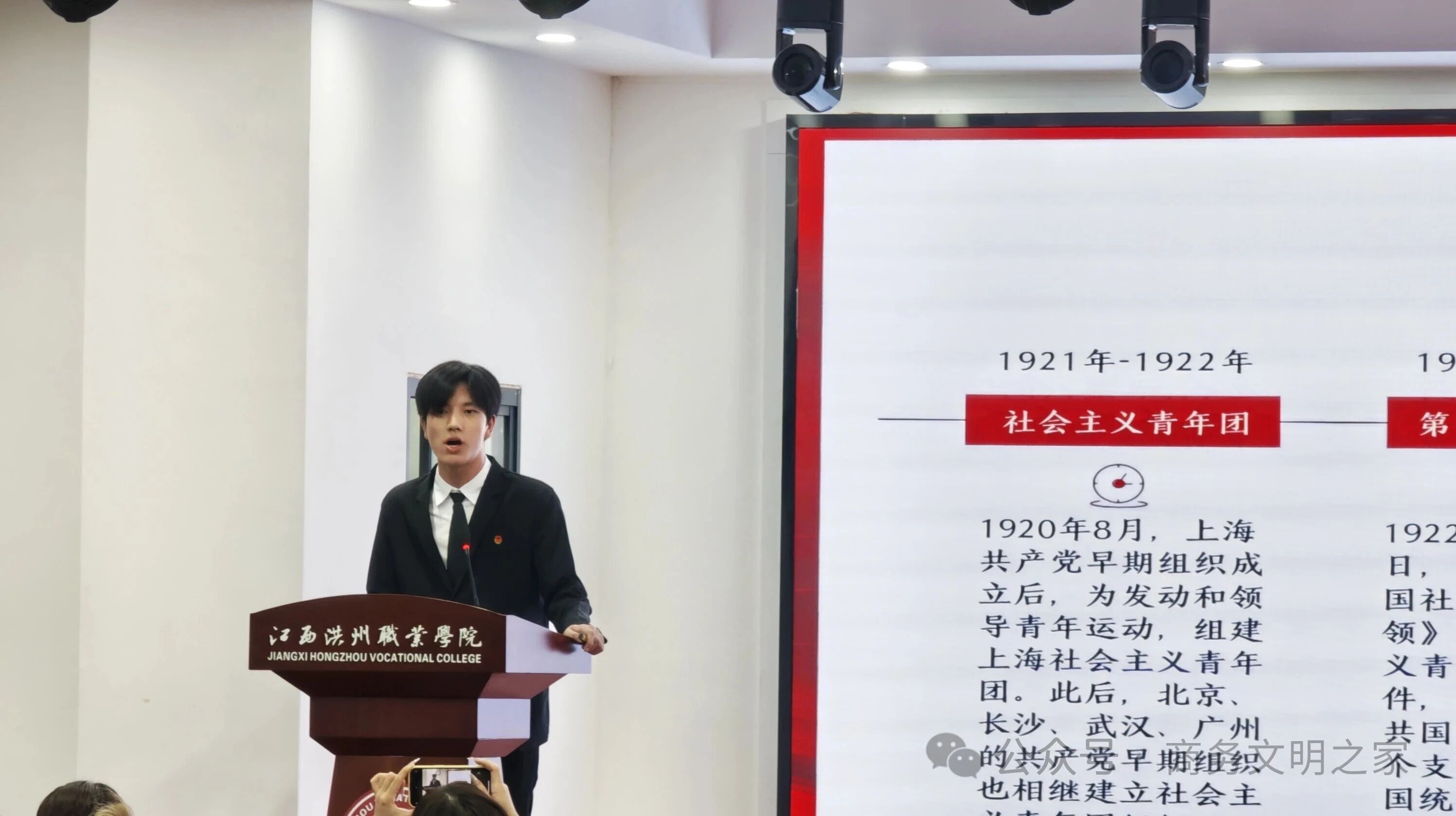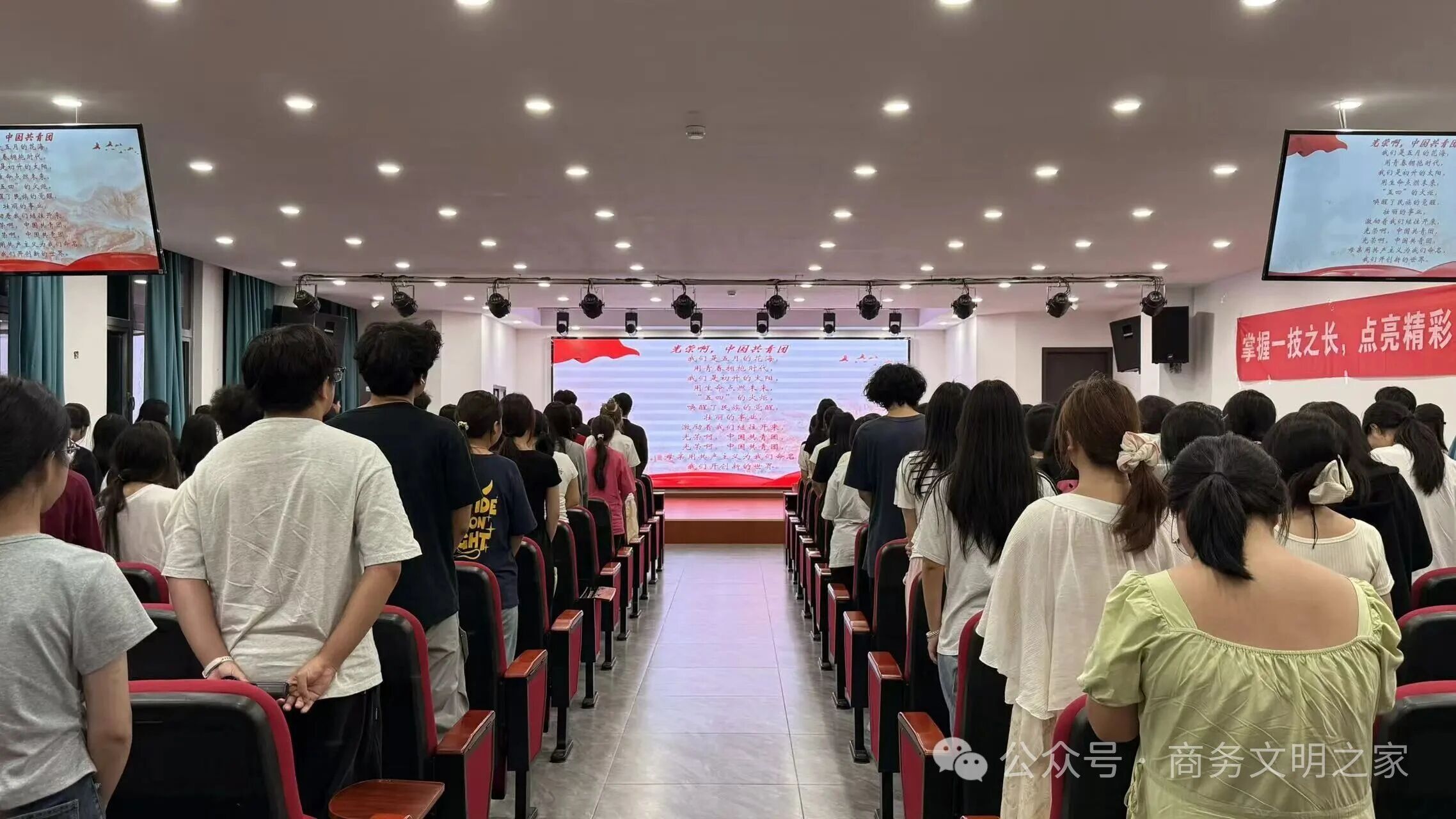 比赛开始前,全场起立,奏唱团歌《光荣啊,中国共青团》。随着主持人宣布微团课大赛开始,比赛正式拉开帷幕。
