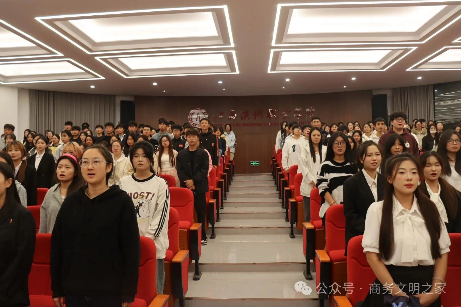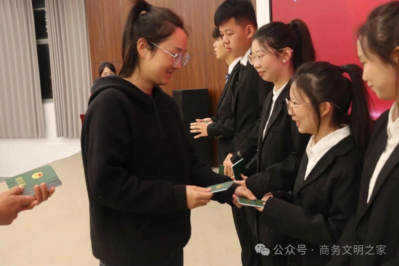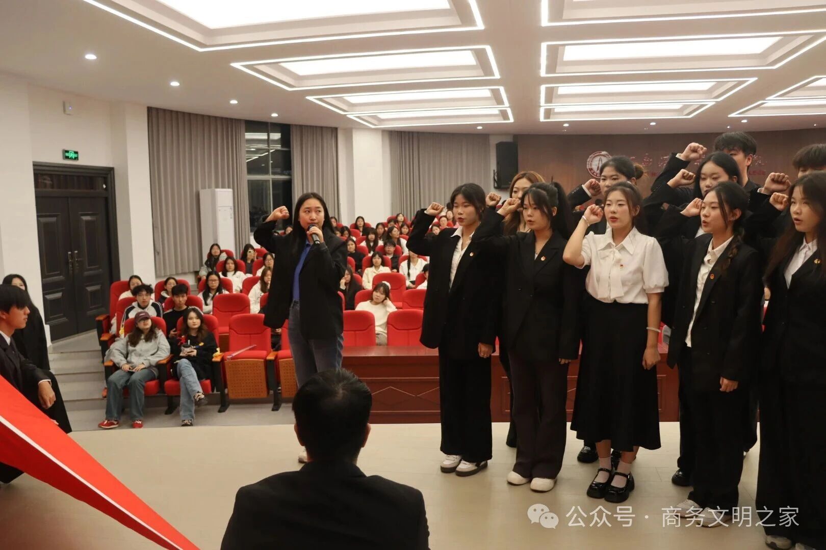 深入贯彻习近平总书记关于青年工作的重要思想,进一步夯实共青团基层组织建设根基,切实增强共青团组织的凝聚力与战斗力,推动团员先进性教育走深走实、入脑入心,于2025年10月27日商学院在举行6栋一楼圆厅教室举行“学习新时代,争做新青年” 新团员入团仪式。商学院党总支部书记程思梦、团总支书记李婷及辅导员老师邓建业、范恩妮以及新团员们出席了本次入团仪式,由徐超亿和聂楚欢主持。