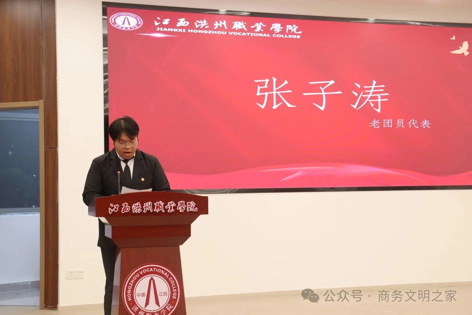 老团员张子涛代表同学表示团员的身份不仅是一份荣誉,更是一份沉甸甸的责任。 她希望新团员珍惜这份荣耀,牢记入团誓言,坚定理想信念,谱写无愧于时代、无愧于共青团员的崭新篇章!
