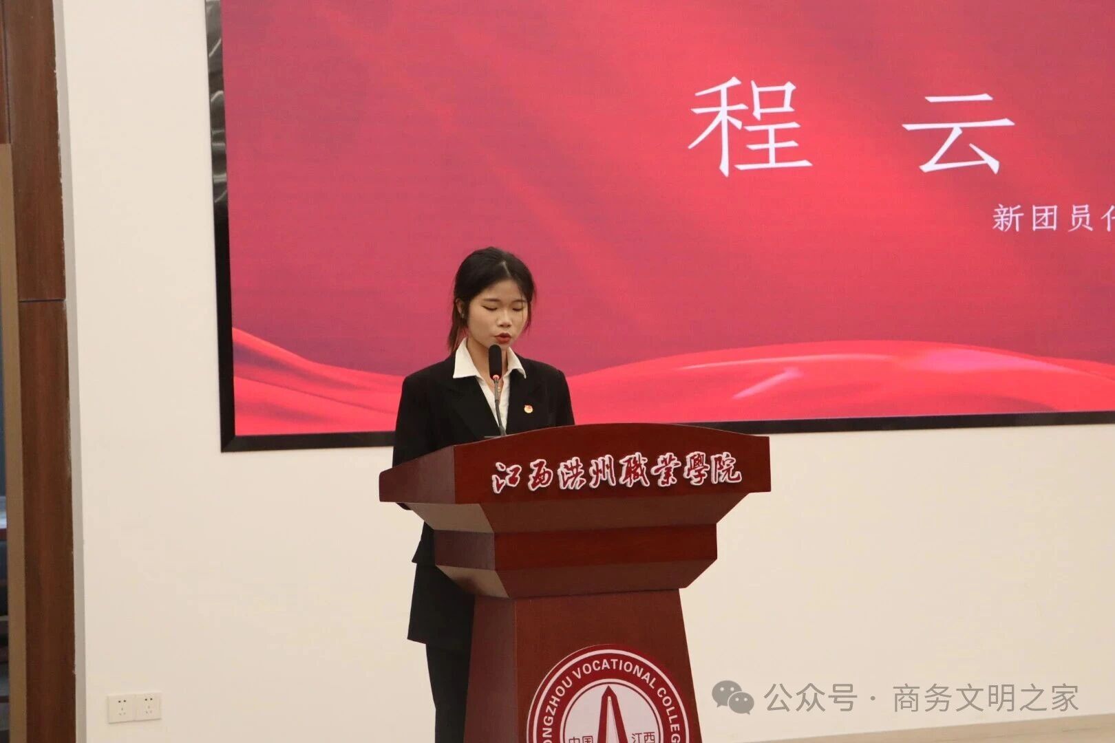 新团员代表程云上台发言,她表达了对团组织的向往之情,并坚定地许下了未来将努力践行团员使命的承诺。