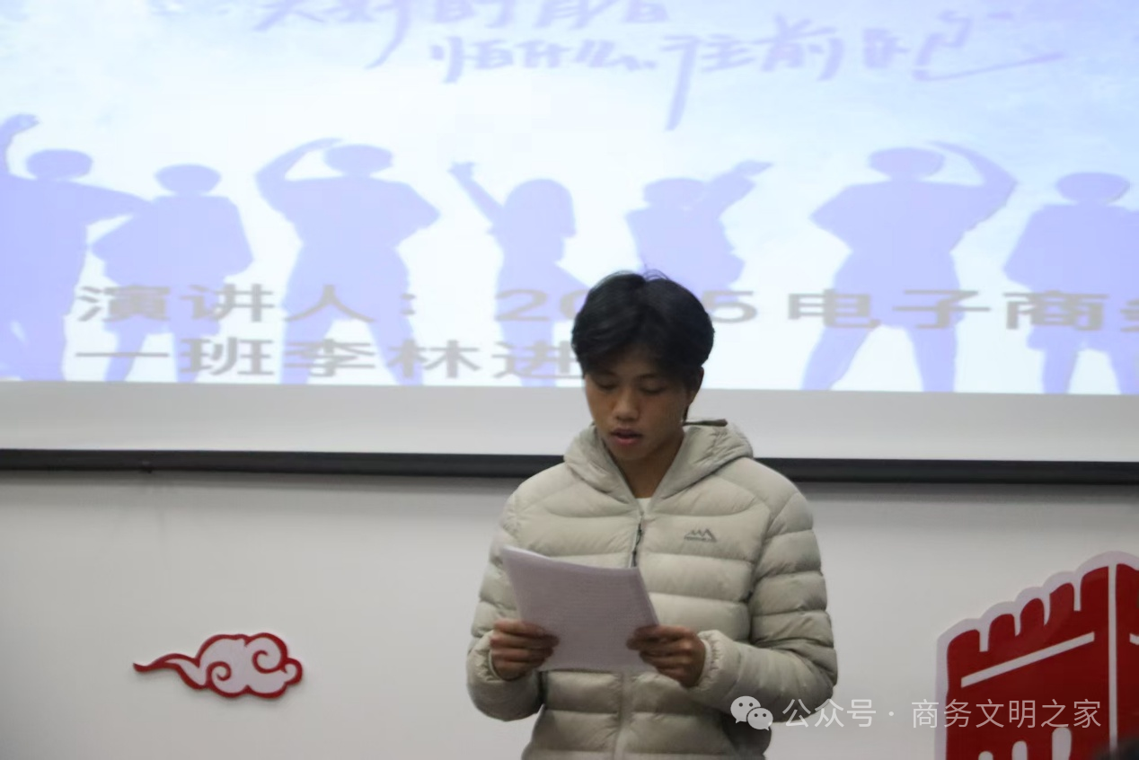 李林同学进分享的主题是青春力量,奋斗铸就