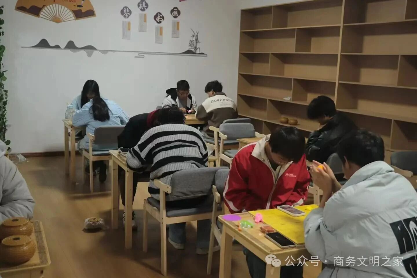寒风初起,冬日已至。2025年12月7日,学校一站式服务中心大厅却暖意融融,商学院“指尖造梦”主题手工活动在这里悄然展开。画布上的斑斓色彩、彩泥间的创意碰撞、石膏娃娃的细腻描摹,为冬日校园增添了一抹温暖明亮的艺术气息。