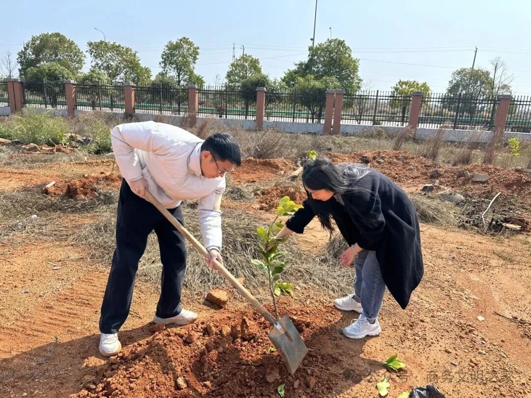 春风送暖,万物复苏,又是一年植树好时节。为深入开展劳动教育,增强学生的环保意识、责任意识,在植树节到来之际,商学院党总支组织师生开展了以“植树绿心,绘美洪州”为主题的植树节实践活动,本次活动由商学院党总支书记程思梦带头,党员教师代表、学生代表共同参与。