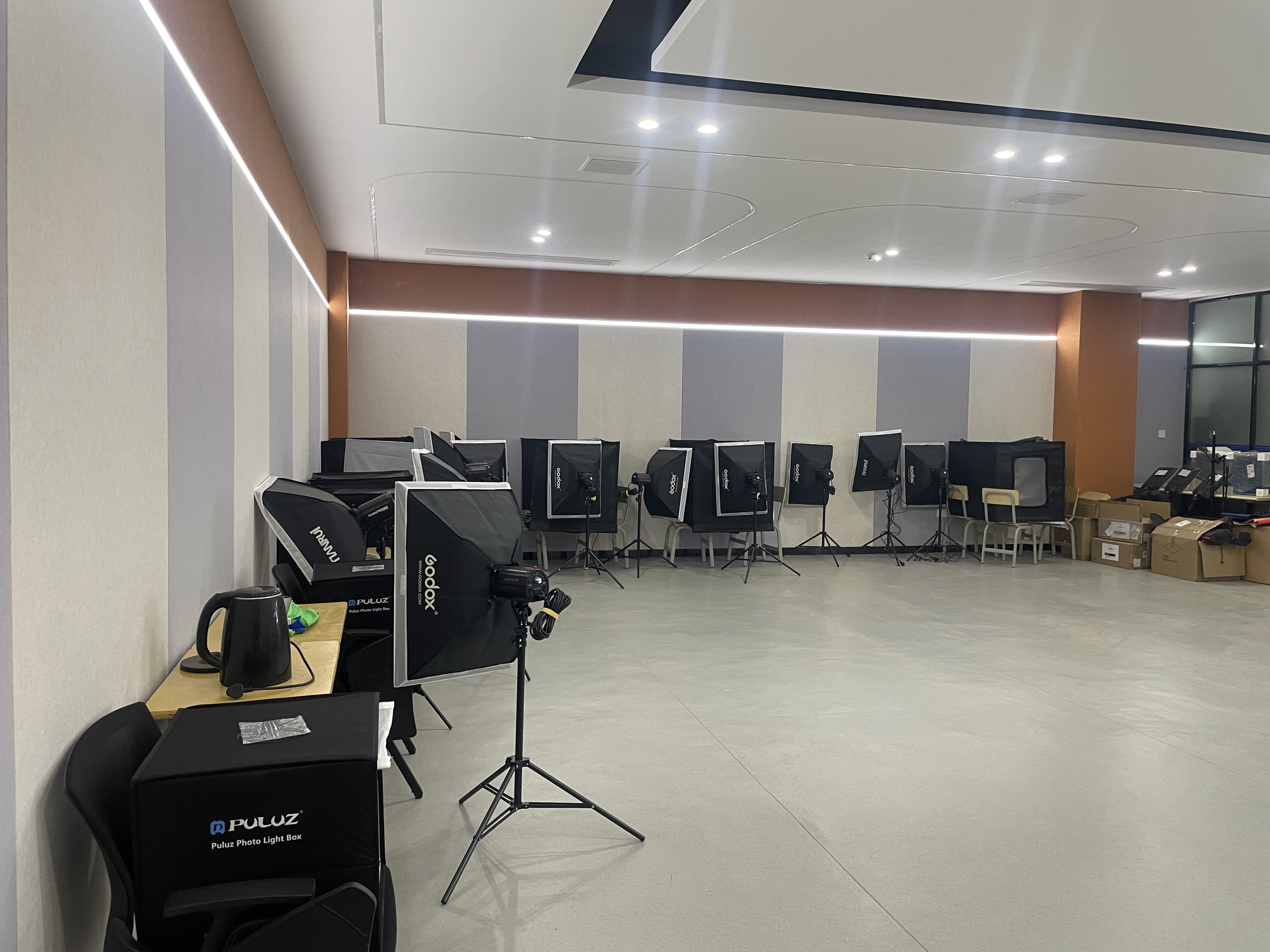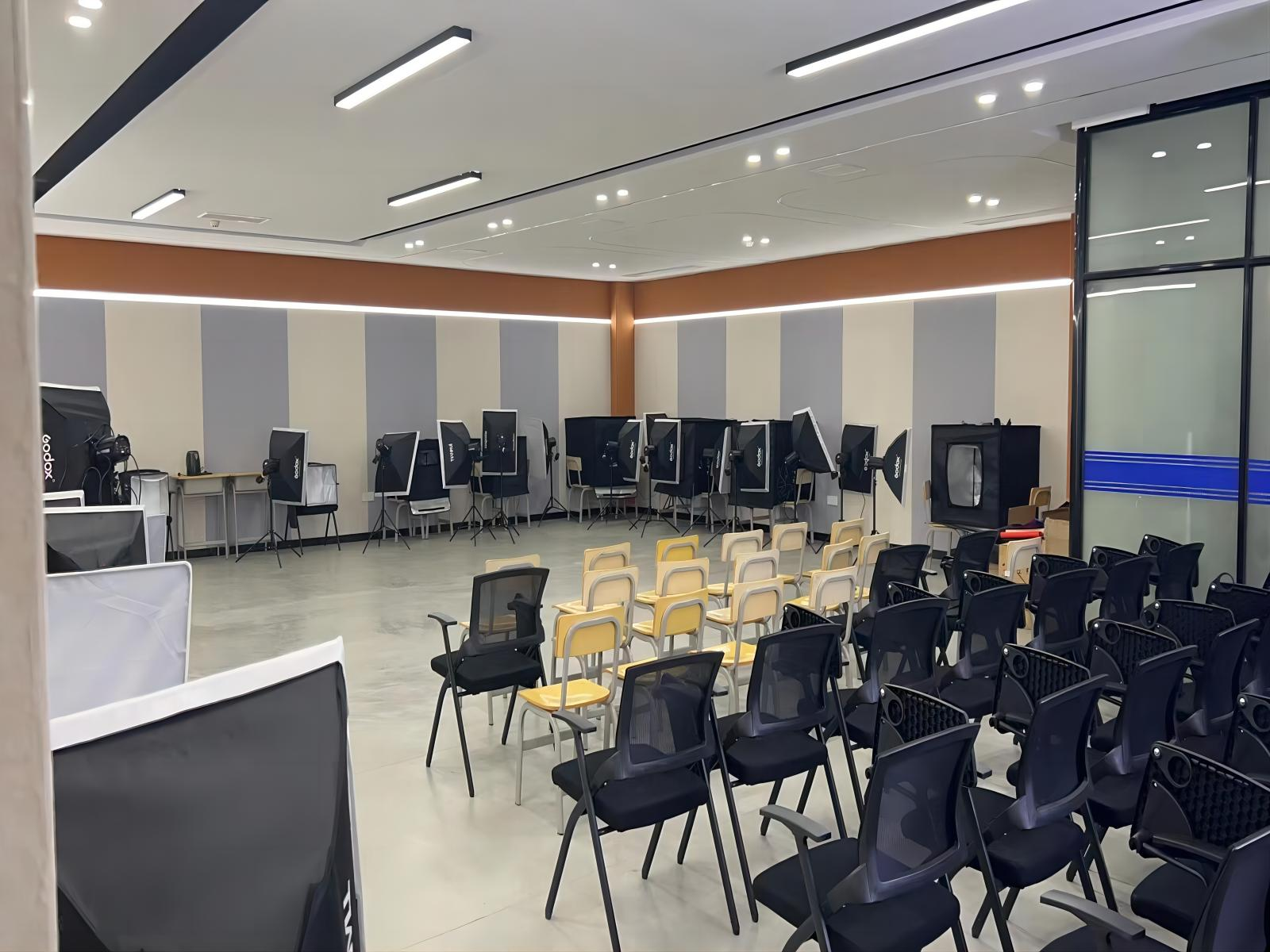 摄影实训室共计152.82平方米,如图(3)所示摄影实训室可以承担图片与视频拍摄的教学与实训功能,实训室参照真实工作环境,配备全套视频拍摄设备,包括单反相机、摄像套装、单反云台、手机云台、滑轨、背景布、高配电脑、摄影灯光等。能够支持学生开展商品图片拍摄、短视频拍摄、以及后期制作等实训锻炼。使学生掌握不同商品短视频拍摄中的布景、布光、构图、运镜等实践能力。