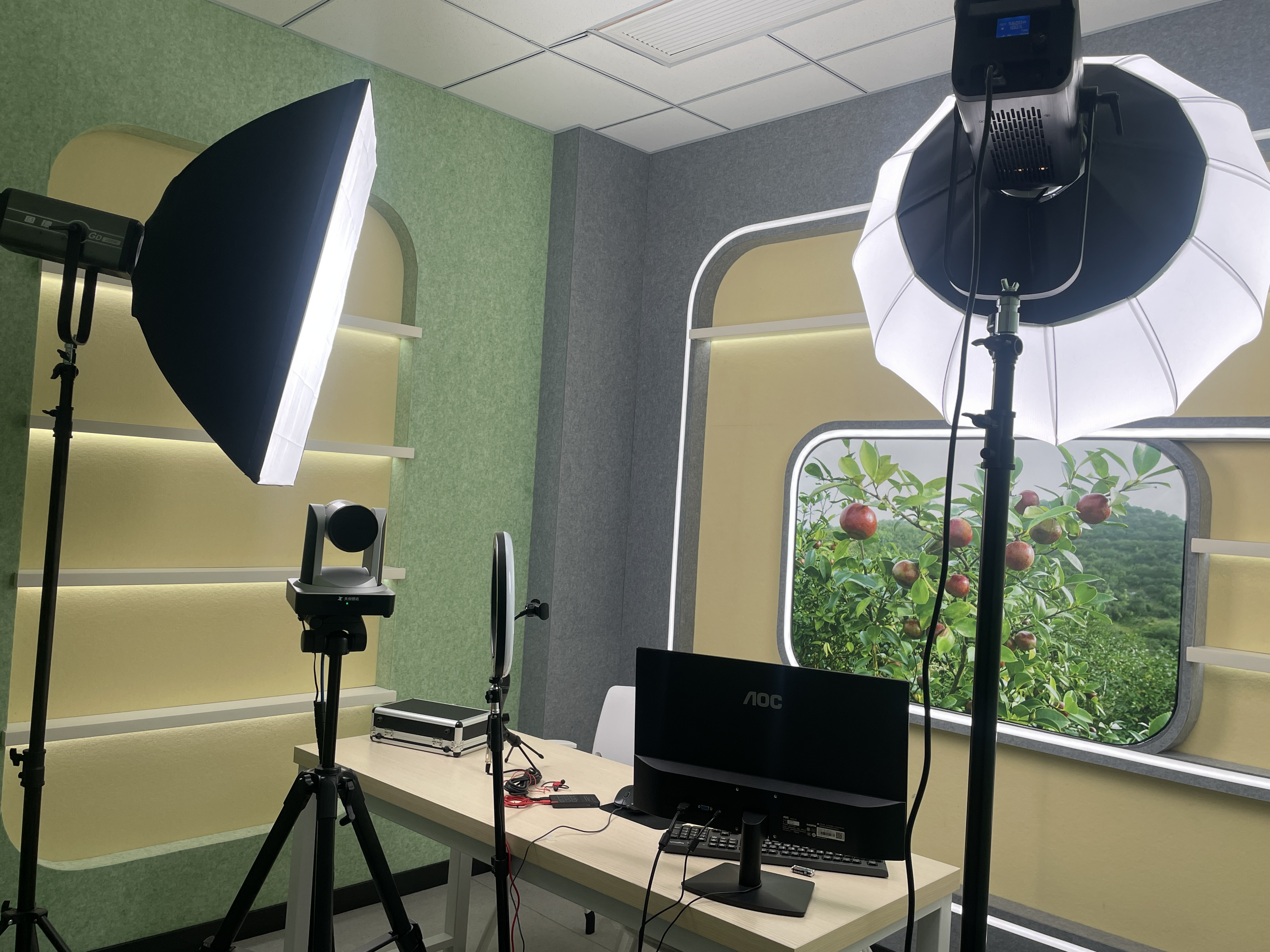 特色直播间主要用于电子商务与网络营销与直播电商专业师生进行专业实践教学,总共6间,面积136.08平方米。主要承担《直播电商运营》、《新媒体营销》、《网络营销》等课程。