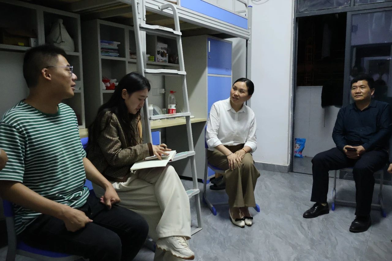 5月6日晚上8点40分,江西洪州职业学院纪委书记熊巧玲、商学院党支部书记杨旭华、商学院学工办副主任李婷以及商学院全体辅导员走进2023级学生寝室,与同学们面对面交流,解决生活,学习,心理,家庭经济困难等问题。