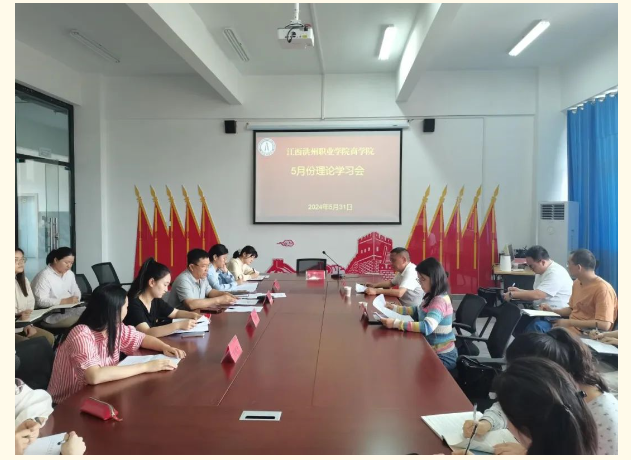 为深入学习贯彻习近平总书记关于党的自我革命的重要思想,扎实推进党纪学习教育。根据学校党委安排,5月31日下午14:30在新实训楼c栋4-3商学院党员活动室举行党支部理论学习会。参加会议的人员有:商学院书记杨旭华以及全体商学院教职工。思政部主任彭庆,护理学院副书记陈欣旁听。