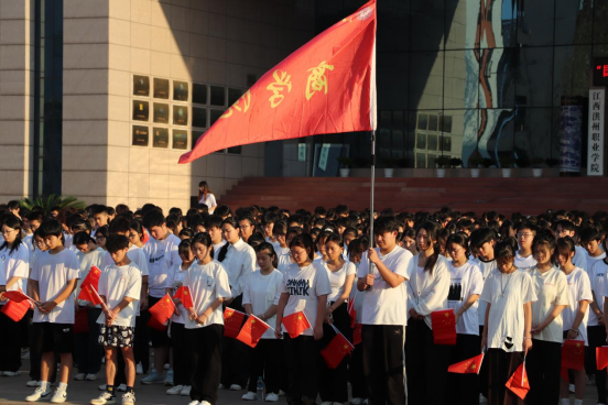 2024年9月30日早上7点,商学院于图书馆门前广场举行国旗下思政课,江西洪州职业学院党委纪委书记熊巧玲,商学院党支部书记杨旭华,商学院学工办副主任李婷,商学院全体辅导员以及商学院全体学生共1500名学生参与此次活动,活动由杨旭华主持。