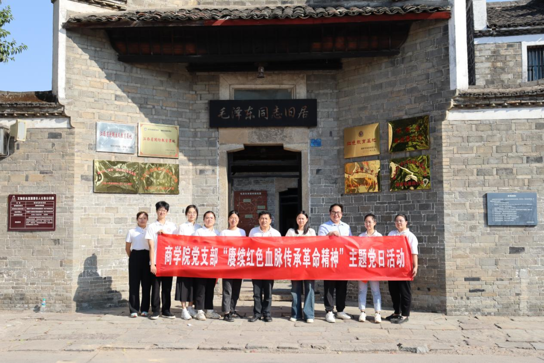 2024年10月11日,商学院党支部的党员来到江西樟树市毛泽东故居参观学习,开展爱党、爱国主义教育,现场聆听革命故事、重温红色战斗历程,接受红色革命传统教育。参与此次活动的有商学院党支部书记杨旭华,组织委员黄灿兰和商学院的党员。