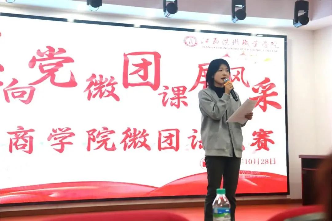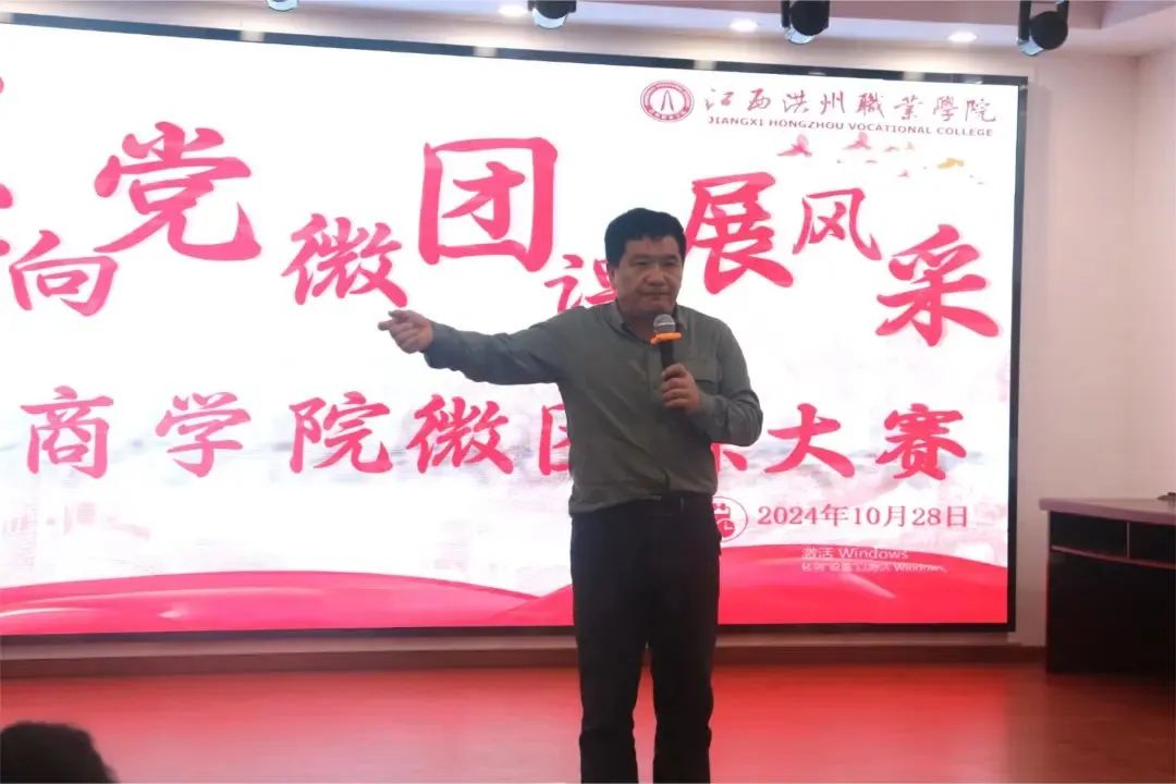 为深入学习贯彻习近平新时代中国特色社会主义思想和党的二十大精神,认真学习习近平总书记关于青年工作的重要思想,推进面向广大团员和青年开展学习贯彻习近平新时代中国特色社会主义思想主题教育,进一步夯实我校共青团基层组织建设。商学院于2024年10月28日在C栋505举办2024年江西洪州职业学院商学院“微团课”大赛。