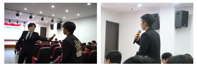 选手们不光只是演讲更是利用现场与学生提问互动形式带领同学们重走复兴之路,肩负时代使命。