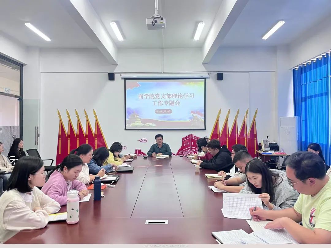 为深入学习贯彻习近平总书记重要讲话和全国教育大会精神,扎实做好习近平同志《论教育》学习宣传工作,准确把握教育强国建设规划纲要的战略部署和实践要求,2024年10月16日下午,商学院学生党支部于实训楼四楼党员活动室党召开十月政治理论学习会。党支部书记杨旭华出席会议,商学院全体老师也参与其中。