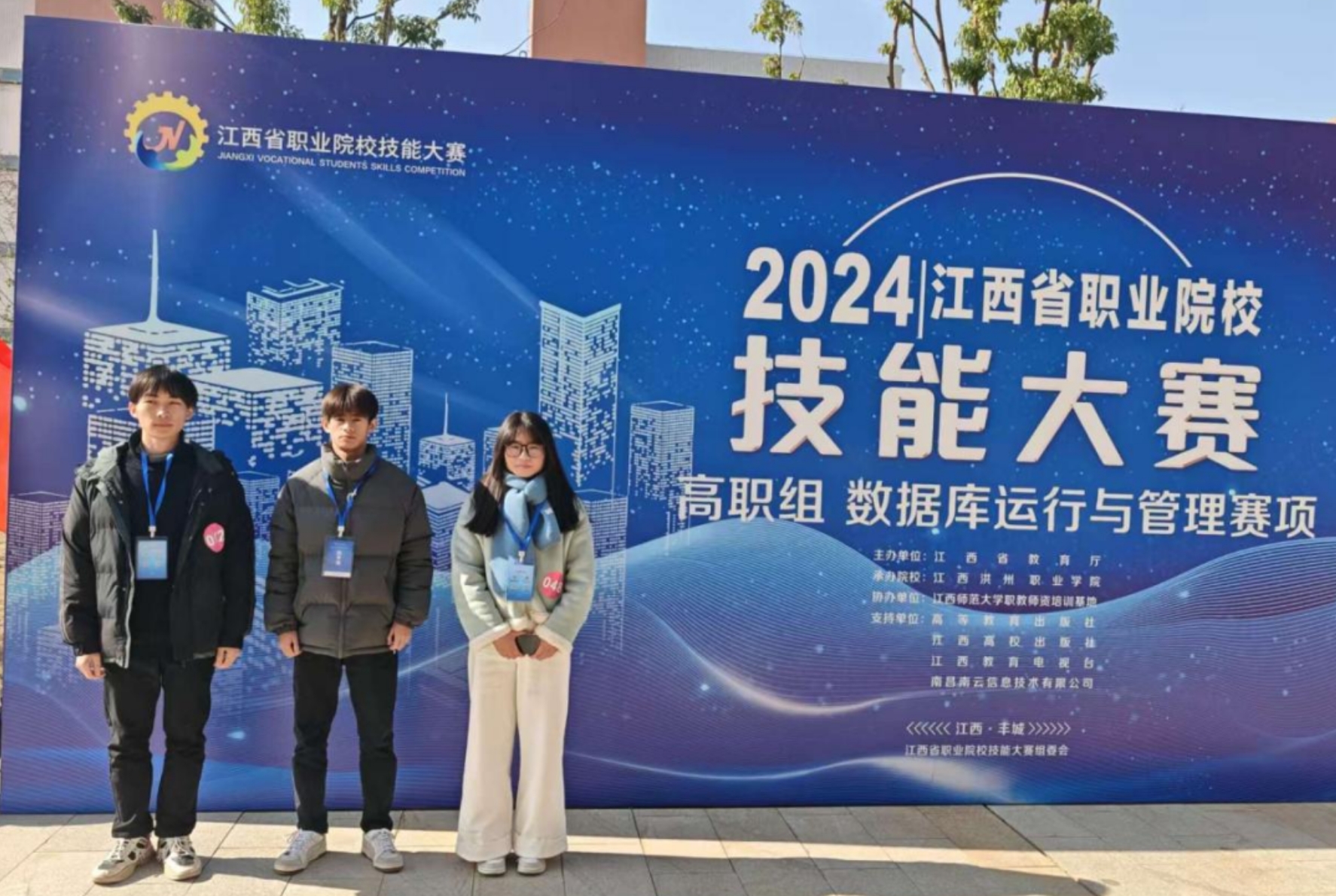 2024年12月15日,江西省职业院校技能大赛数据库运行与管理赛项在我校隆重举行,此次赛事吸引了全省44所高职院校共129名参赛选手参与,经过4个小时紧张激烈的角逐,我院派出的肖勋牧、洪大燚、孙梦静三位参赛选手表现卓越,荣获一等奖。
