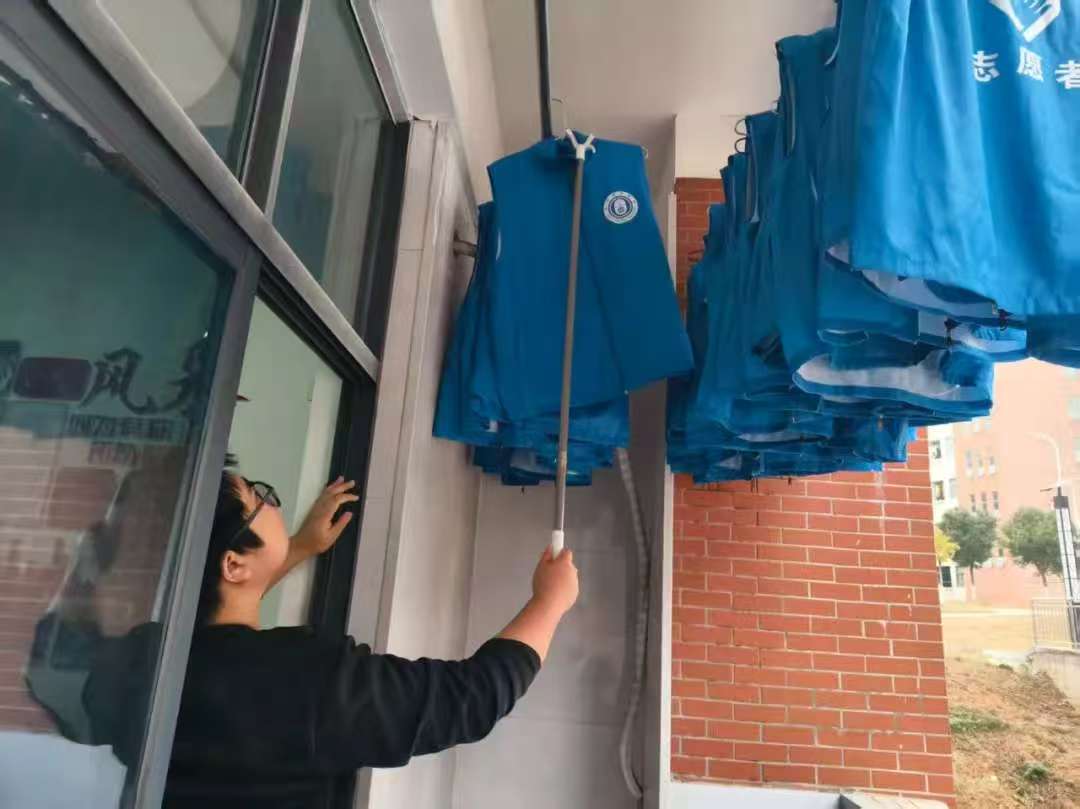 活动现场,志愿者们分工协作、热情高涨,迅速投身到清洁整理工作中。手持扫帚、拖把的同学,认真清扫阵地地面的灰尘与杂物,对桌椅缝隙、墙角拐角等卫生死角进行细致擦拭;水池边,同学们专注地清洗志愿服务马甲,反复揉搓、漂洗,让一件件蓝色马甲重焕洁净光彩;另有同学将洗净的马甲整齐悬挂晾晒,并对志愿工具、宣传物料等物资分类整理、有序收纳。从室内卫生清扫到志愿物资归置,志愿者们不放过任何一处细节,用勤劳的双手让志愿服务阵地的环境焕然一新。
