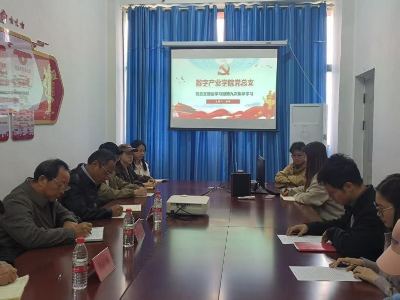 在党的二十届四中全会胜利召开之际,为第一时间学习领会全会精神,精准把握“十五五”规划编制的核心要义,数字产业党总支于10月22日下午,在党员活动室召开理论学习专题会议。学院全体党员参会,曹义亲副校长及朱海龙主任、易桂林处长列席旁听,共同筑牢思想根基、凝聚奋进共识。