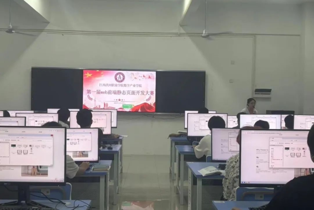 为全面贯彻落实党的二十大精神,在教育强国建设中开创职业教育新局面,塑造新赛道,提升学生软件开发水平,熟练掌握实验及操作技能,提高就业竞争力。2024年5月15日,数字产业学院第一届Web前端静态页面开发大赛与实训楼B栋顺利举办。