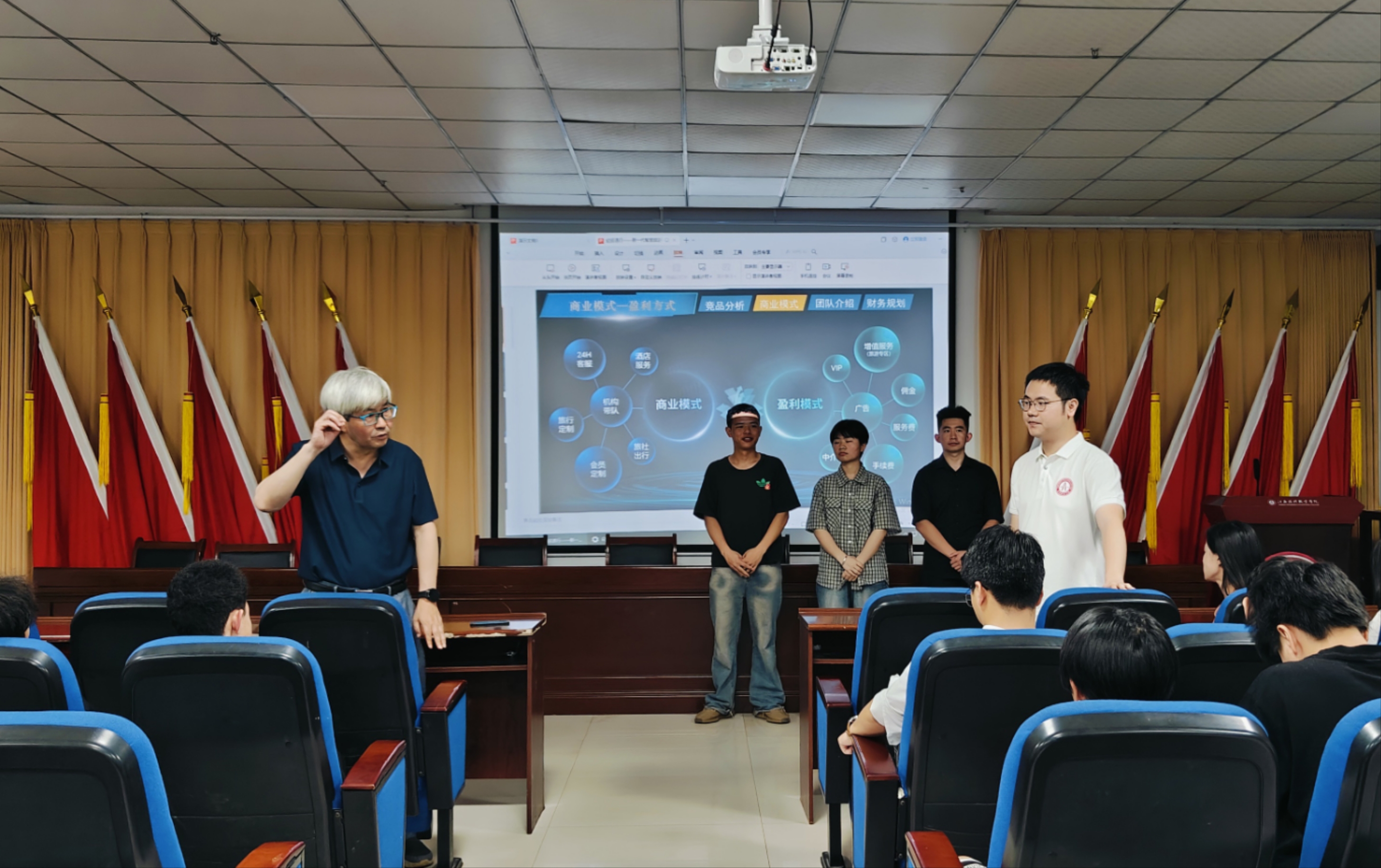 在项目汇报过程中,入围团队通过精心准备的报告和项目展示,详细介绍了项目的背景、目标、实施过程和成果。邓院长就项目实践、完善改进、文本撰写等方面进行点评,并提出宝贵建议,激发了同学们对创新创业的兴趣和追求。