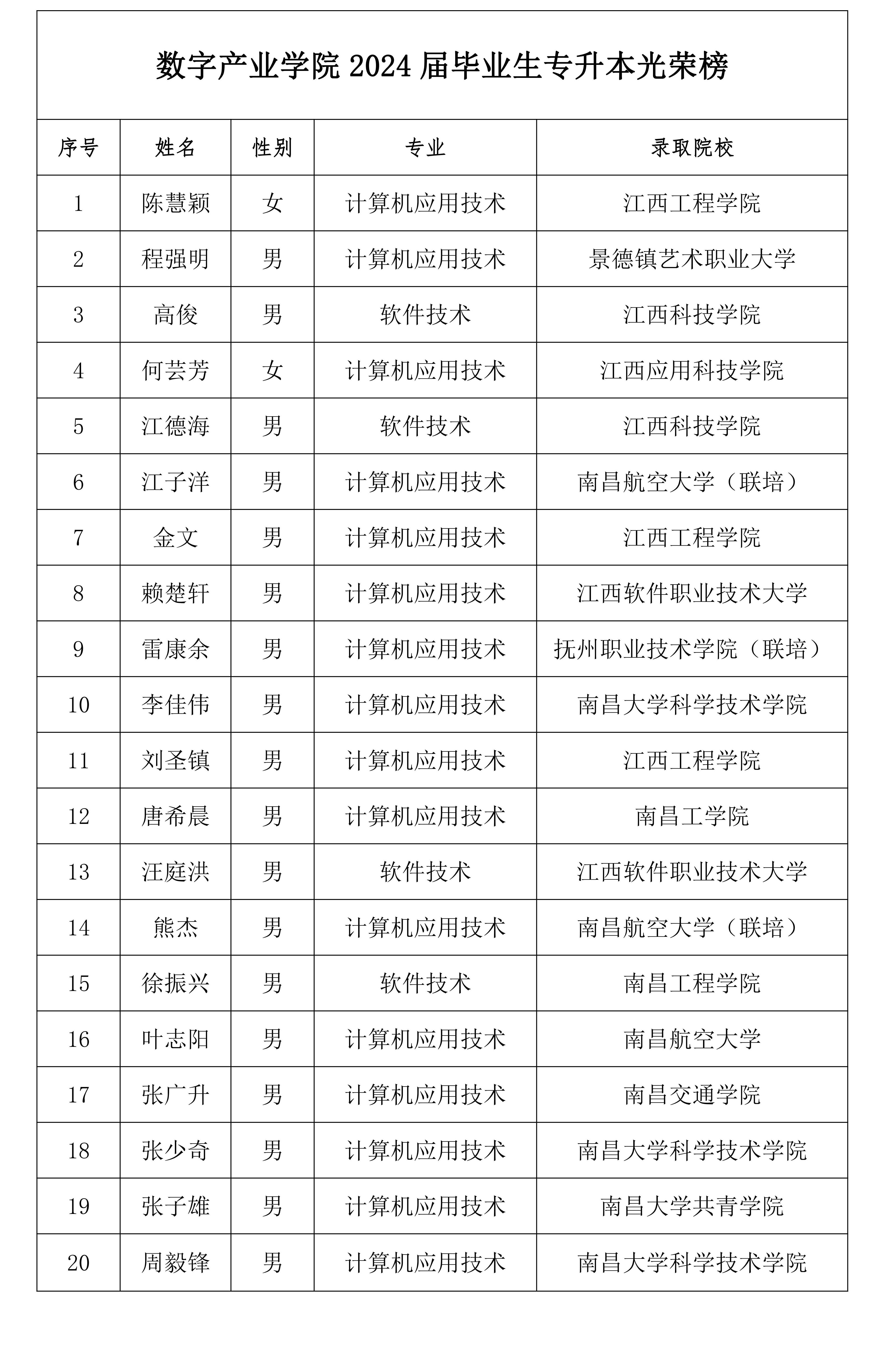心田耕耘矢志坚,榴花欲燃捷报传。2024年江西省“专升本”考试录取结果揭晓,数字产业学院2024届32名毕业生参加专升本考试,其中20名学生被本科院校录取,录取率达62.5%,占全校录取人数的43.48% ,再创新高,可喜可贺!