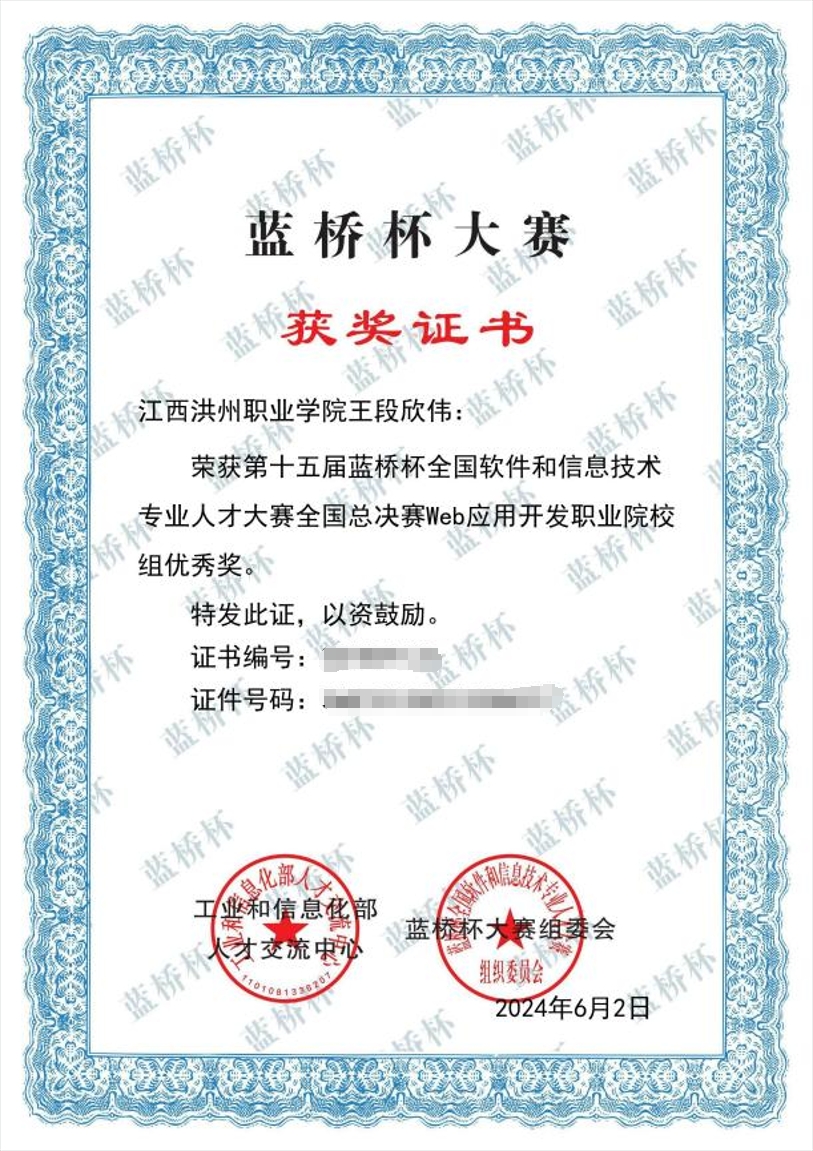 我院参赛学生凭借扎实的专业素养和创新能力,在众多选手中脱颖而出,展现了学院在人才培养方面的卓越成果。最终何立祥老师指导22高职软件技术班王段欣伟同学斩获Web应用开发国赛优秀奖。