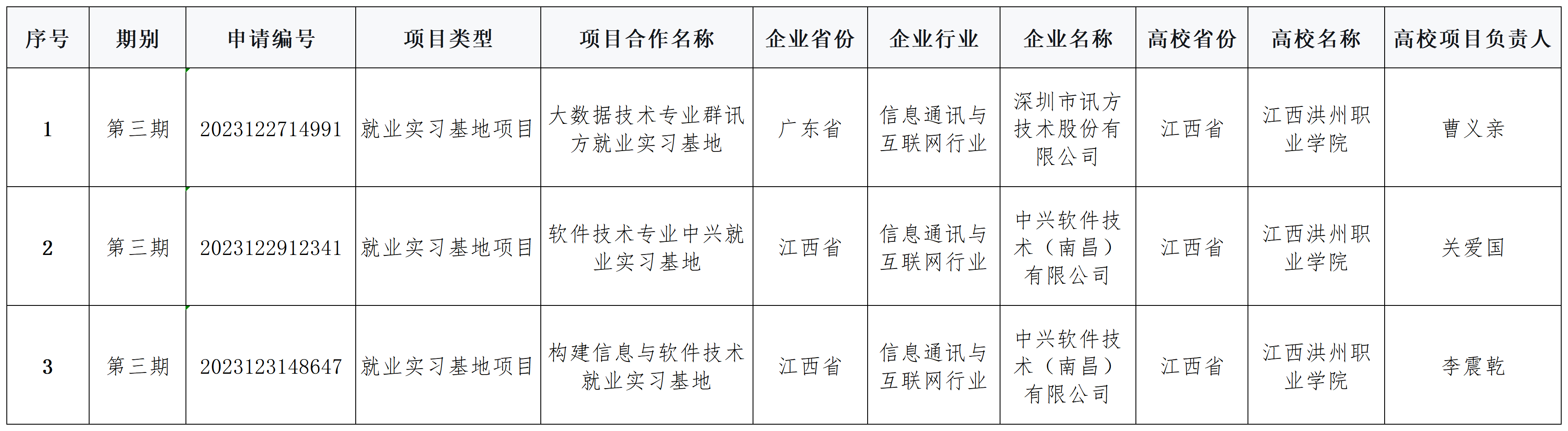 教育部高校学生司组织用人单位和高校实施供需对接就业育人项目,是进一步落实党中央、国务院“稳就业”“保就业”的决策部署,是深化产教融合、校企合作,推动人才培养与就业的有机联动、人才供需有效对接的有效途径。数字产业学院先后多次组织推进项目申报论证,与用人单位积极联系共同申报,经教育部组织专家审核,我院《大数据技术专业群讯方就业实习基地》(负责人:曹义亲教授,成员:徐明、易丽、熊健、张紫盈);《软件技术专业中兴就业实习基地》(负责人:关爱国副教授,成员:徐明、钱倩文、何立祥、陈茹莹);《构建信息与软件技术就业实习基地》(负责人:李震乾讲师) 3个项目入选教育部第三期供需对接就业育人项目立项名单。