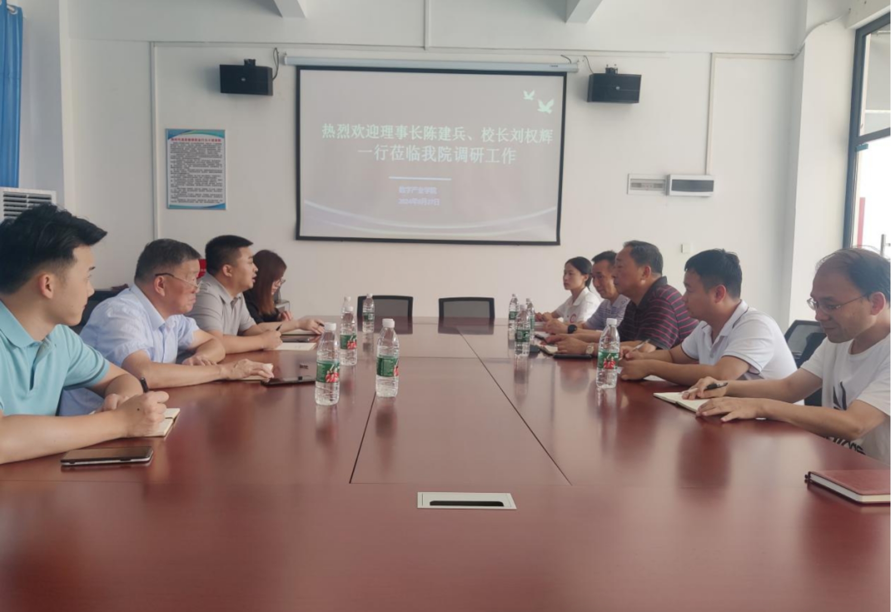 为深化教育教学改革,促进二级学院全面发展。2024年9月27日下午,理事长陈建兵偕同校长刘权辉、财务总监金红艳等领导一行莅临数字产业学院,开展深入细致的调研工作。此行旨在把握学院在教学管理、师资队伍建设、学生培育等方面的现状,精准识别学院存在的挑战与难题,为学院的进一步高质量发展提供更为精准、高效的决策依据。