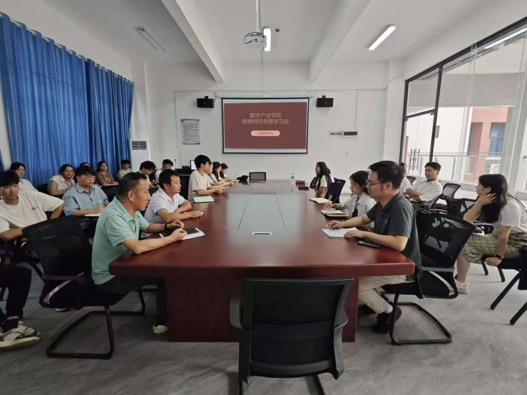 为进一步规范新时代高校教师职业规范,深化师德师风建设,9月11日,我院开展学习《新时代高校教师职业行为十项准则》文件精神的专题会议,本次会议由党支部书记徐明主持,学院全体教职工参会。
