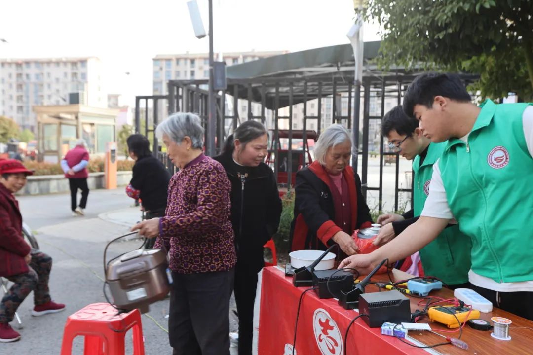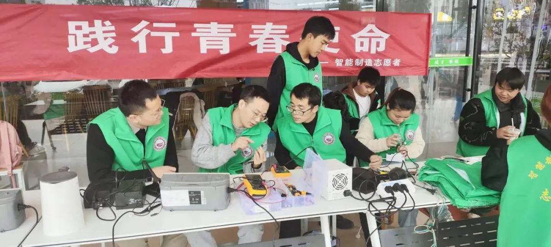 义检义修,用技能献爱心。各二级学院志愿者利用专业特长,在课余时间深入居民社区、幼儿园、养老院等开展志愿服务,积极服务群众,打造具有学院特色的志愿服务活动品牌。新能源产业学院开展了车辆义检义修志愿服务活动。20余位师生组成汽修志愿服务队,利用所学专业知识和技能为教师的车辆进行车辆美容、清洁、车辆检修、维护保养、故障诊断等服务。智能制造产业学院师生志愿者们开展了义务维修志愿服务活动。师生们干劲十足,为“生病”的小风扇、插线板、充电宝、小冰箱和电饭煲等家电找到问题所在进行维修,同时在维修的过程中,向大家介绍如何对小家电进行日常自检工作,普及了安全、使用电器的小知识,得到了师生的广泛好评。
