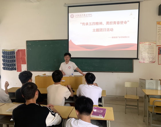 新能源产业学院团总支书记从五四青年节的来历、五四精神的具体内涵、学习五四精神的意义以及弘扬五四精神的具体做法等讲授,并鼓舞团员青年们要继续传承与发扬五四精神,坚持不移听党话、跟党走,争做有理想、敢担当、能吃苦、肯奋斗的新时代好青年,在推进强国建设、民族复兴伟业中展现青春作为、彰显青春风采、贡献青春力量。